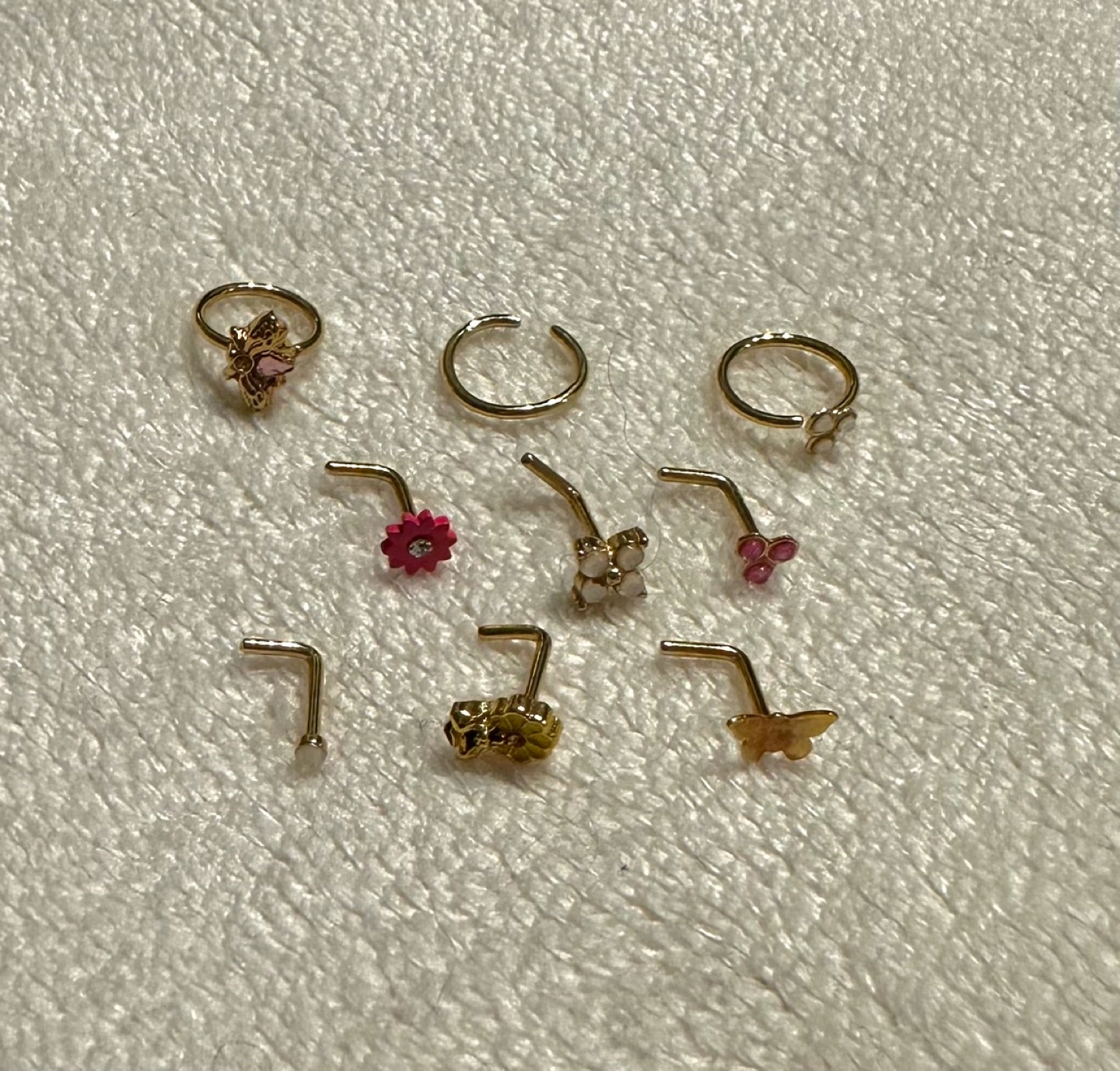 1000+Never worn. Comes with 3 nose rings and 6 studs. All 9 for $10, not selling individually. Pickup is near the intersection of Yonge st and Yorkville ave. Cash is preferred for payment. Optional: receive a freebie with purchase (any item $3 or under on my page). Maximum one freebie per customer.