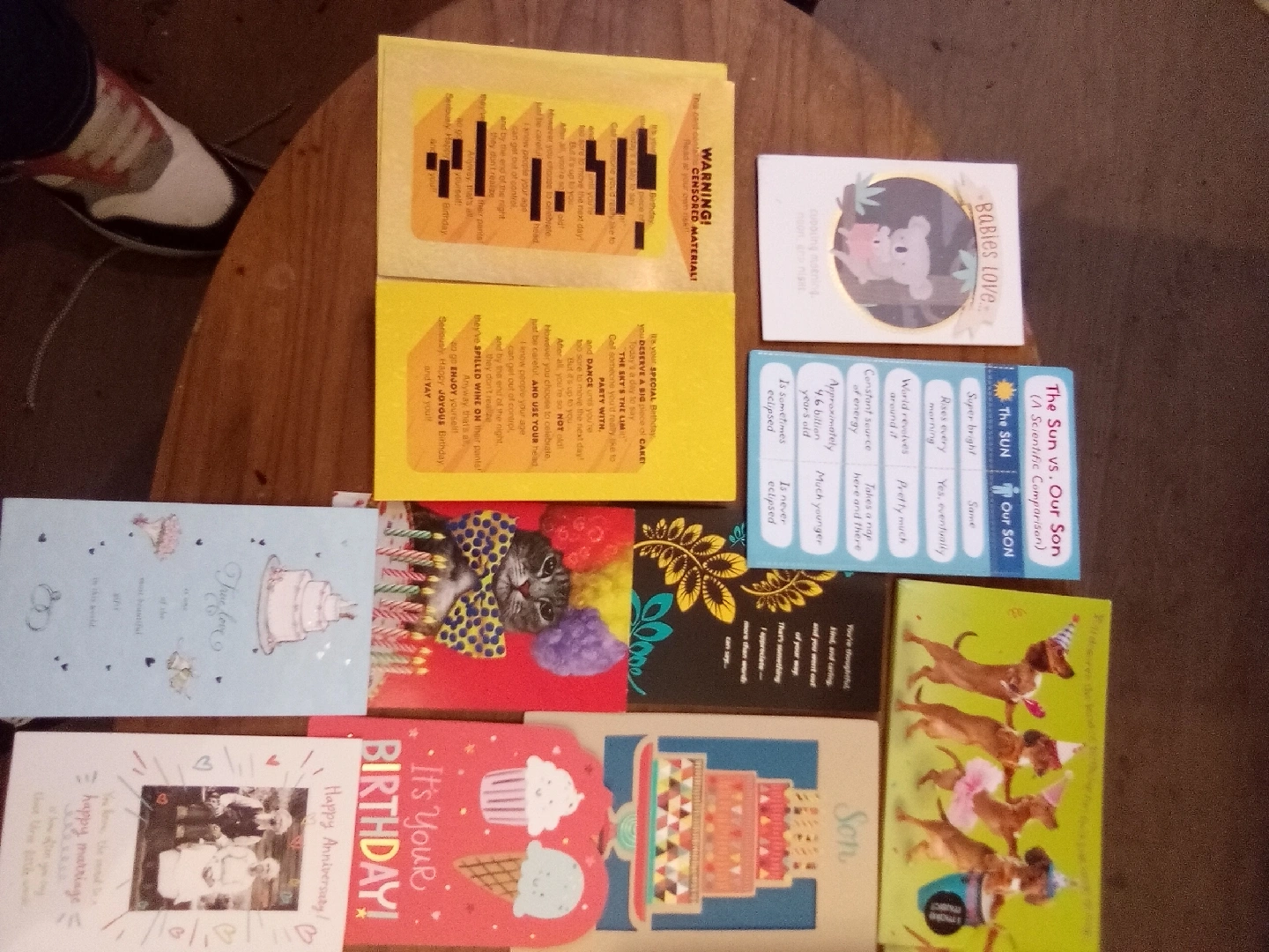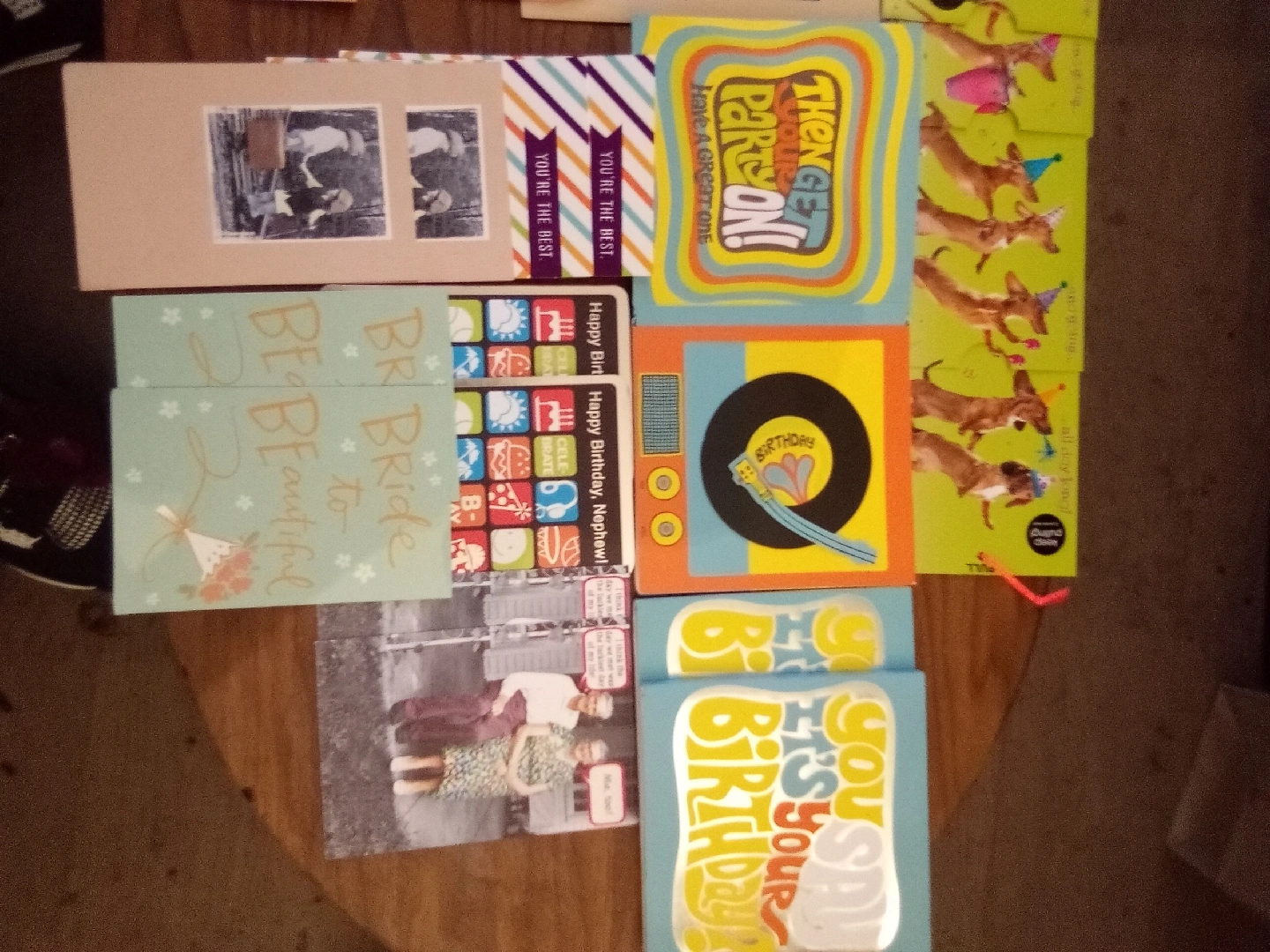 119Selling a collection of assorted greeting cards. There's a variety of fine quality cards for different occasions like birthdays, weddings, and thank you notes. Anniversary, my condolenses cards aswell. Perfect for stocking up! some are pop up, some are musical. all cards are between $4.60-$11.99. 125 cards in total valued at $825. plus a $100 stack of mint envelopes. There is enough envelopes for every card. Take the lot for $75 obo. Willing to trade for a smart watch, mint condition team hats, size 10-11 Nike shoes....anything cool. Tell me what you have.