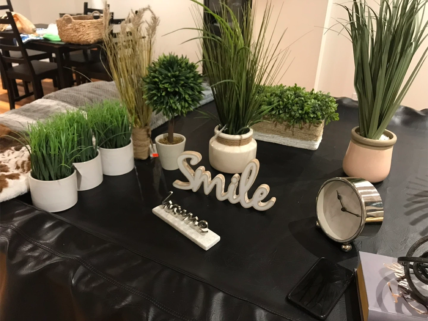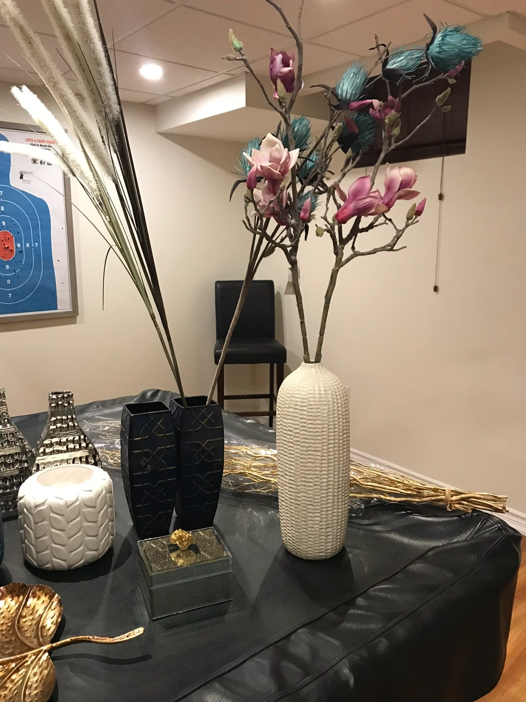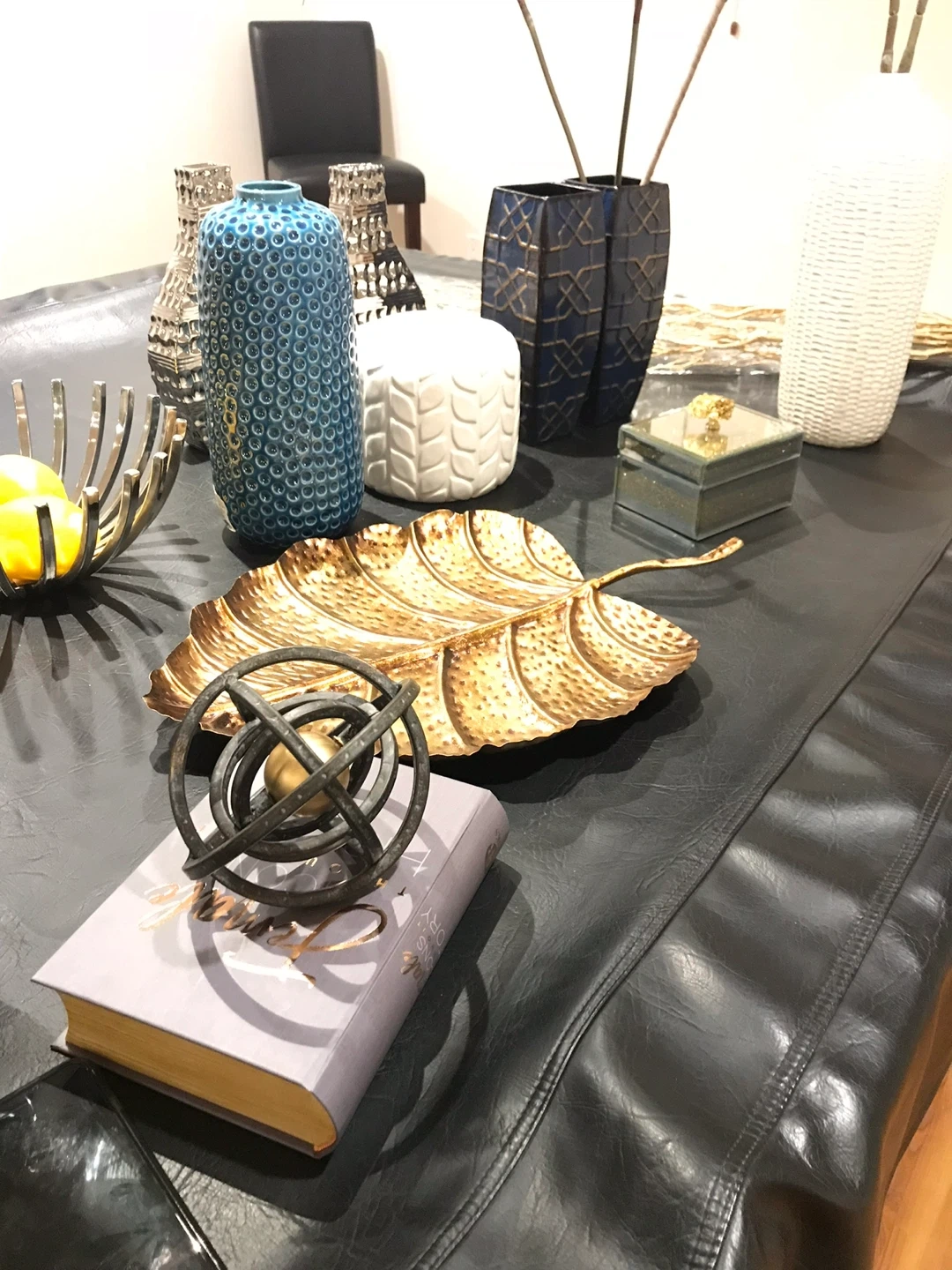 10A collection of various home decor items, including vases, decorative plants, trays, and other ornamental pieces. Perfect for adding a touch of style to any room!
