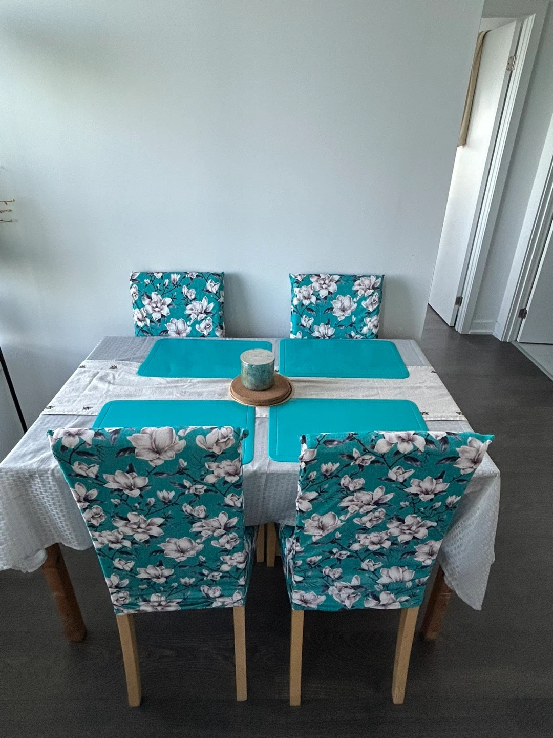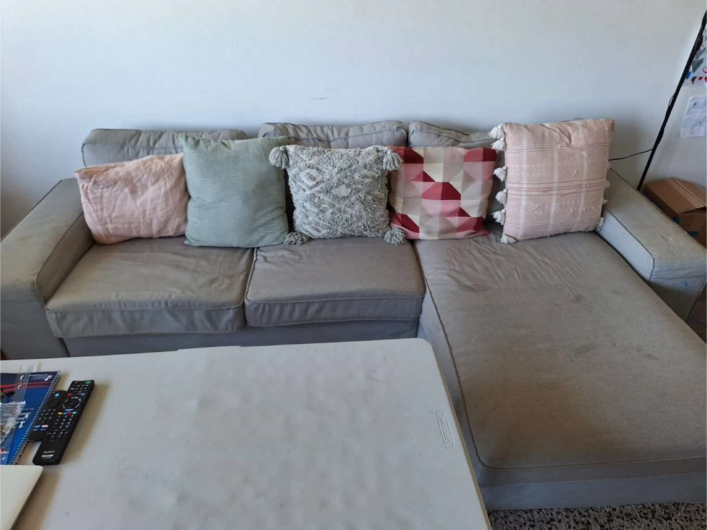 Selling some assorted home furniture. There's a sectional sofa, dining table with chairs, floor lamp, and a bed. All in good condition and ready for a new home!