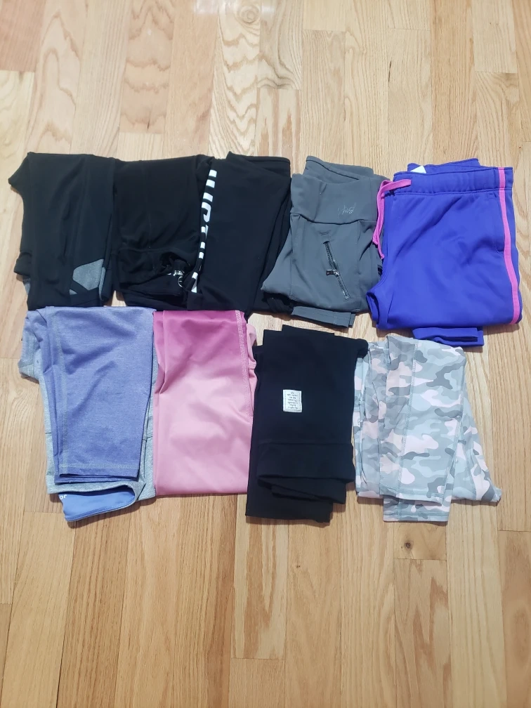 selling a bundle of kids' leggings in various colours and styles. There are a few different brands included. They're all in good condition and ready for a new home!