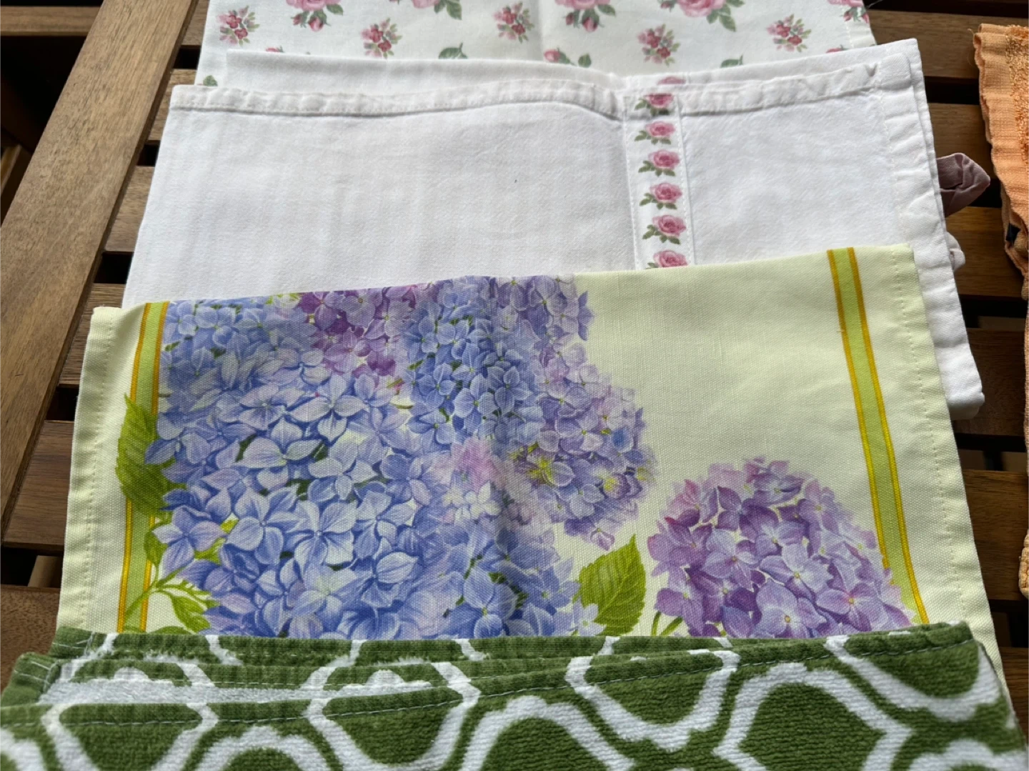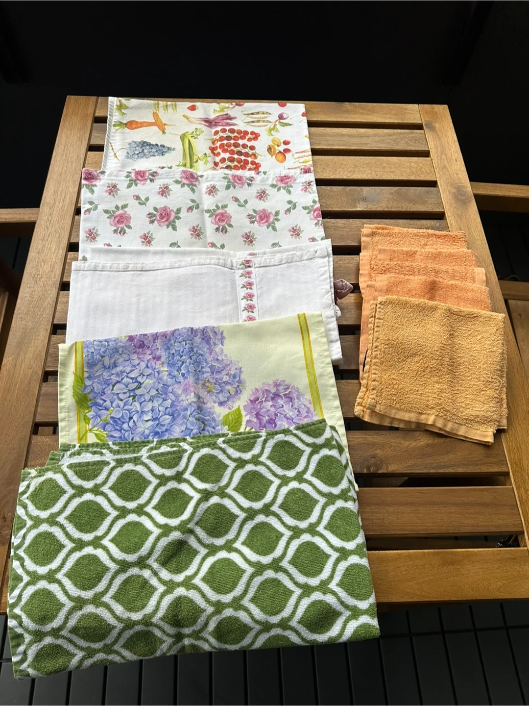 84Selling a collection of kitchen towels and dishcloths. There are various colours and patterns. They're in great condition with some small stains and ready for a new home!