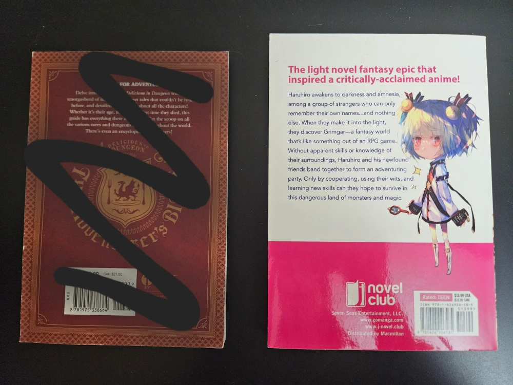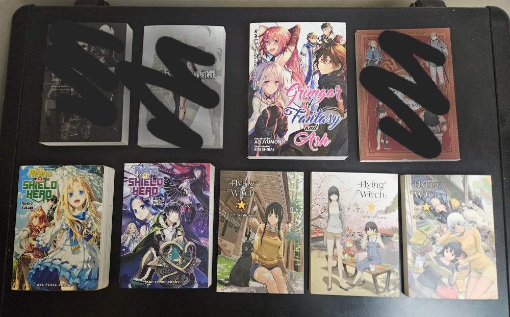 58Selling an assortment of manga and light novels. Titles and prices are as follows: • Nier Automata: Long Story Short (SOLD) • Nier Automata: Short Story Long (SOLD) • The Rising of the Shield Hero Light Novel Volume 2 ($5) • The Rising of the Shield Hero Light Novel Volume 3 ($10) • Delicious in Dungeon World Guide (SOLD) • Grimgar of Fantasy and Ash Light Novel Vol 1 ($10) • Flying Witch Volume 1 ($5) • Flying Witch Volume 2 ($5) • Flying Witch Volume 3 ($5) Most books are in good condition with no more than some minor wear and tear. Shield Hero Vol 2 is in fair condition with some more significant wear, so the price has been reduced to reflect this.