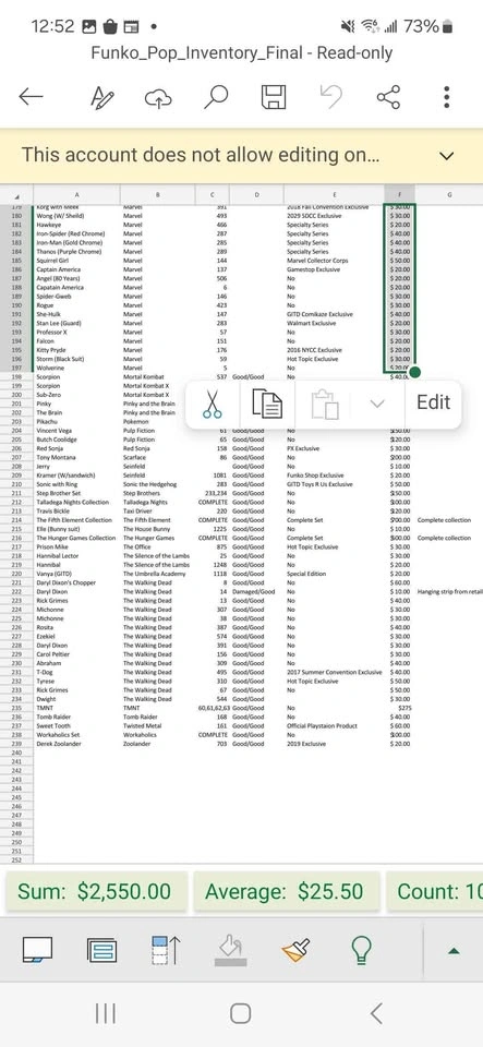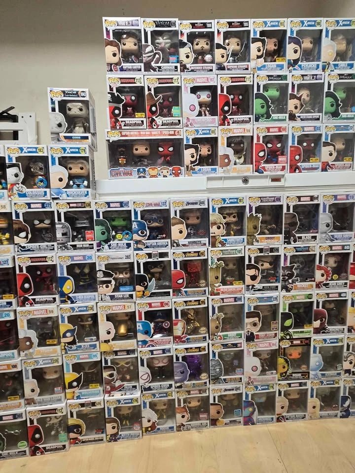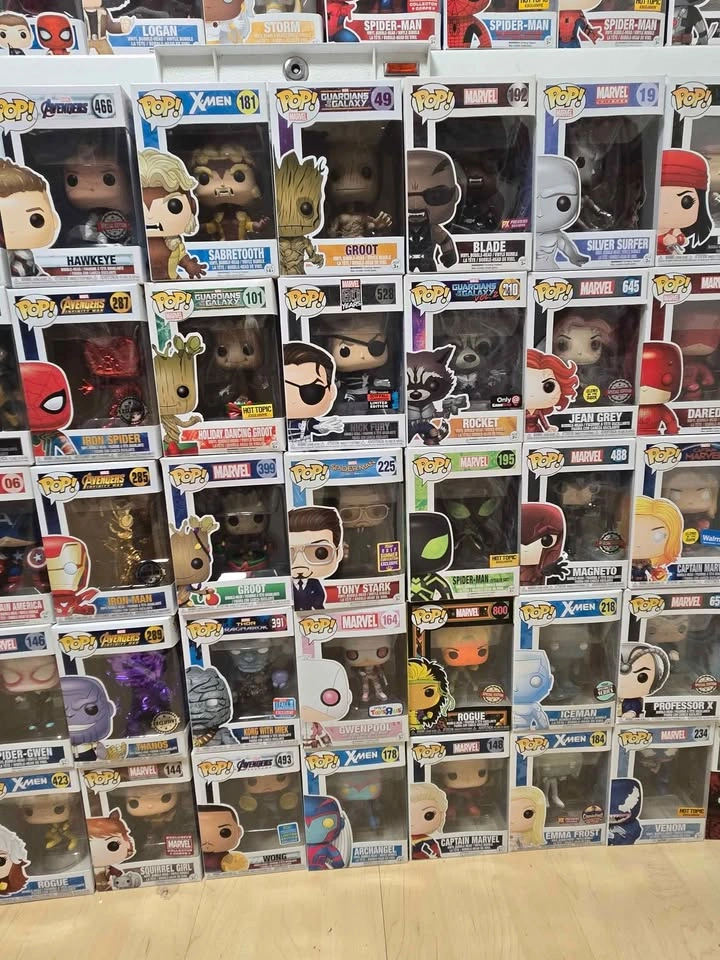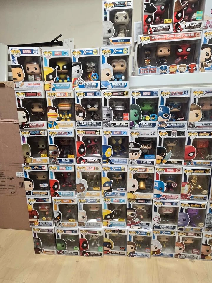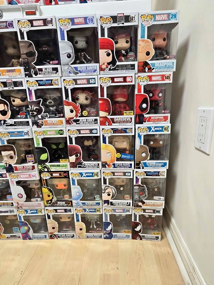 Selling my Marvel Funko Pop collection. See prices in photos. Will take offers for the lot. Pickup in Richmond Hill. SOLD: Emma Frost (both) Blade Falcon (Hot Topic) Silver Surfer Quick Silver Scarlet Witch Iron Man Mark 1 Tony Stark Wong Avengers 4 Pack
