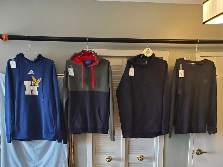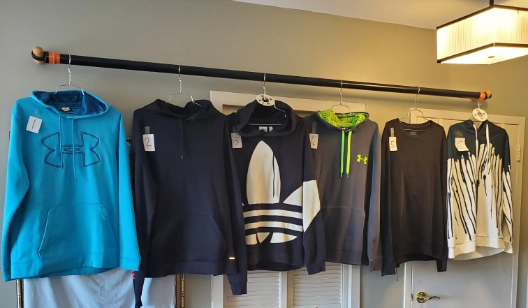A selection of men's hoodies and shirts available. Various brands and styles, including Under Armour and Adidas. Please specify which numbered item you're interested in when inquiring! very good condition only cash price firm no delivery and please message for the price for the page and for the number clothes, because I have different prices for the clothes only cash price firm. I have more clothes jackets shoes vest shirts sweater and Zip pants T'Shirts and more stuff for Men's for sale all size. only Cash Price Firm. I have and app Facebook and app Kijjijji. Location Cawthra and Lakeshore Mississauga.