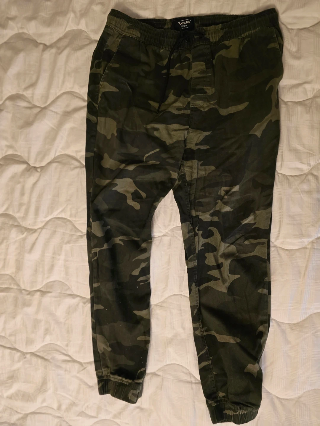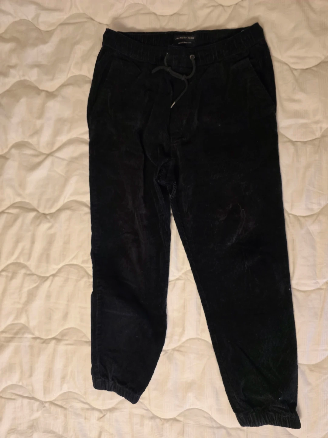 10I'm selling a collection of men's pants in various styles and brands. There's a pair of Rawling athletic pants, American Eagle pants, Haggar dress pants, and a pair of camo joggers. All in good condition!
