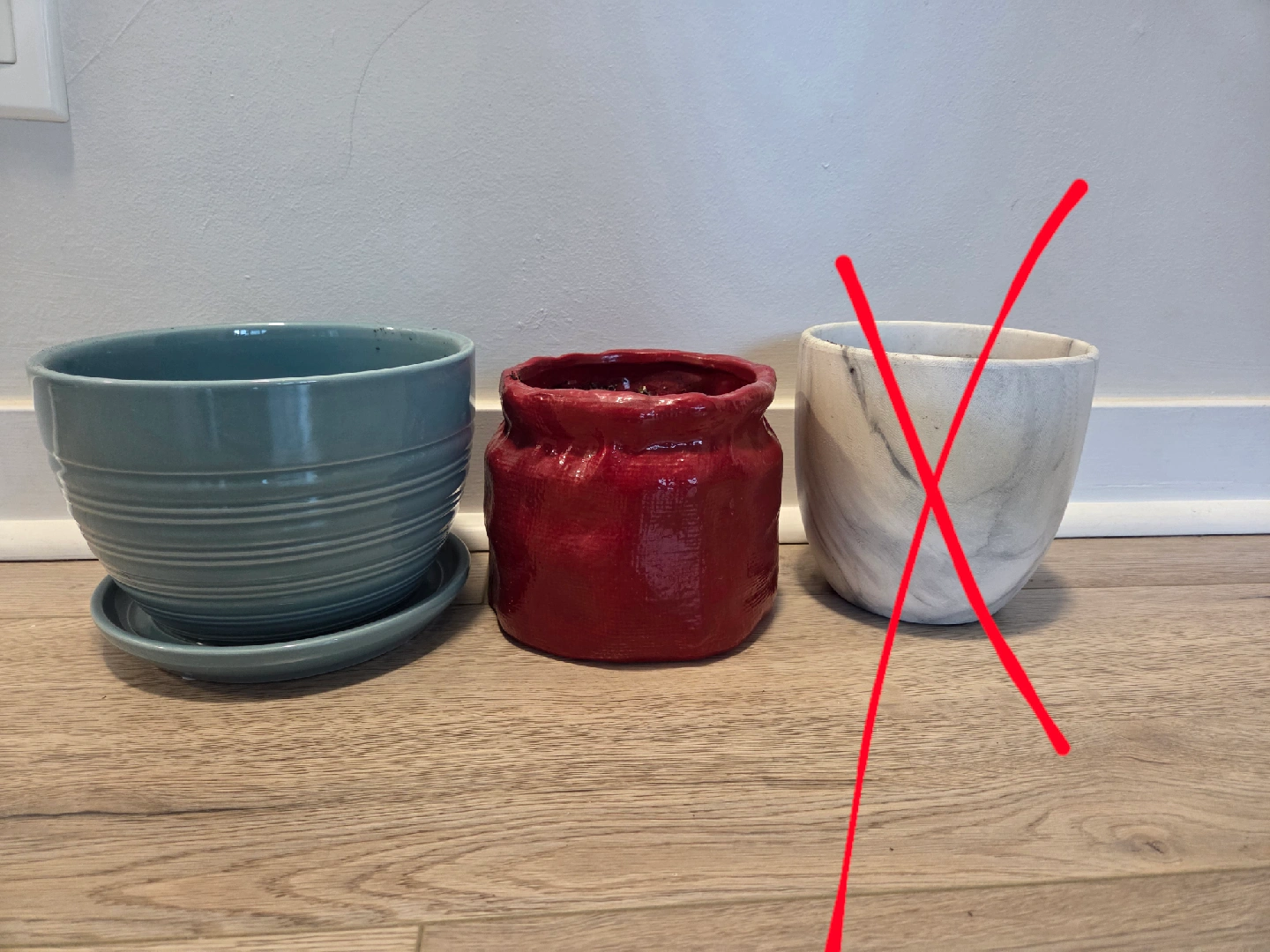 All in great condition, just need a wipedown! White - GONE Blue - $4 (has drainage hole) Red - $5 Pickup at Church/Adelaide.