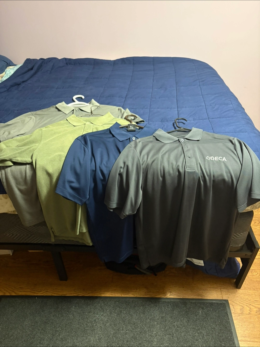 67$15. Selling a bundle of polo shirts in great condition! Includes: - A grey DECA polo - A navy blue Nike Dri-FIT polo (Size M) - A light green Eddie Bauer polo (Size M) All shirts are size medium and ready for a new home