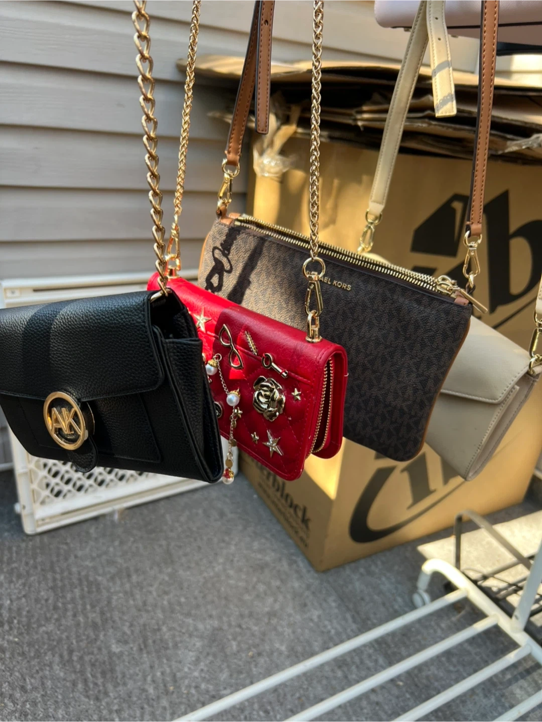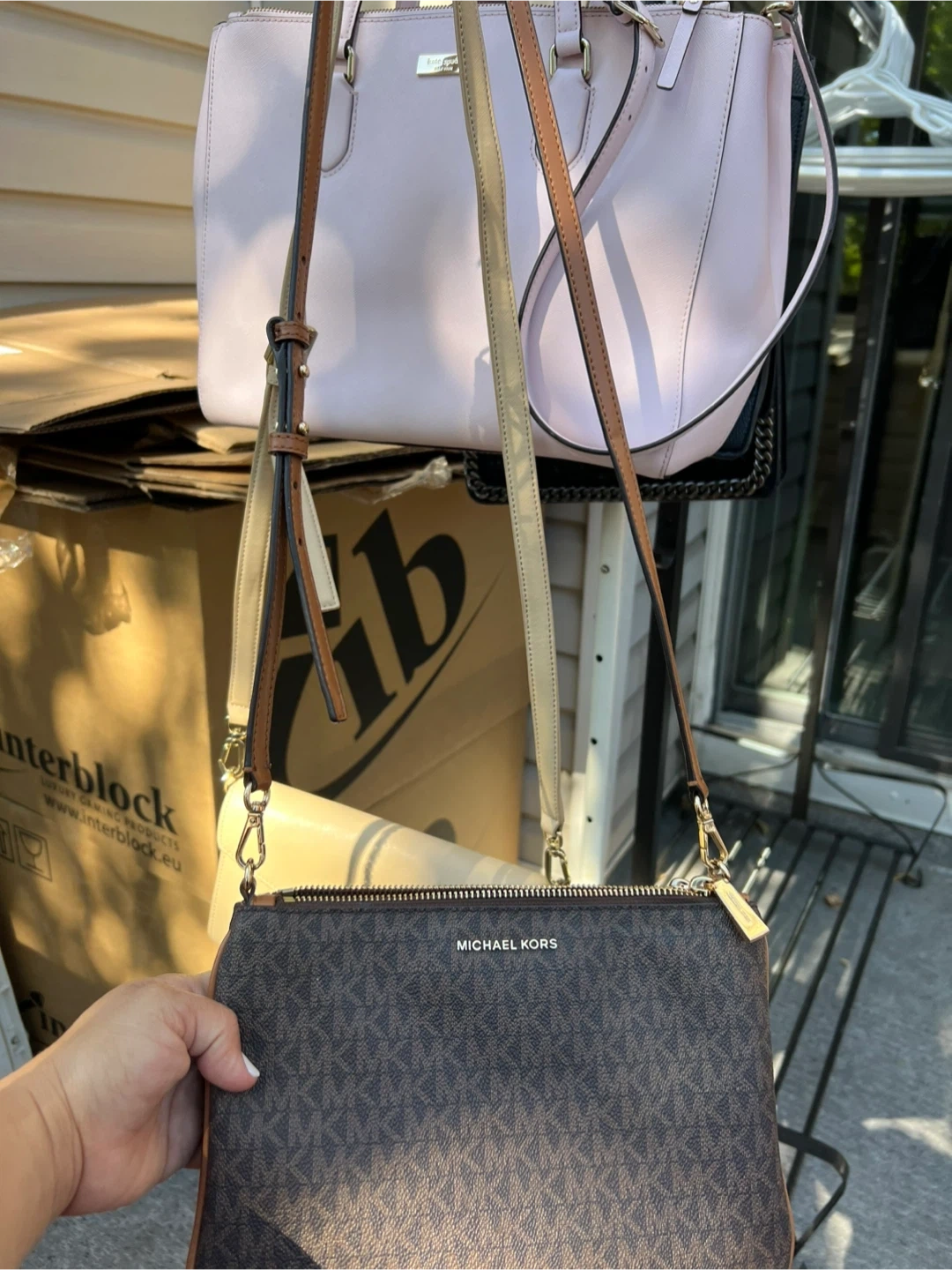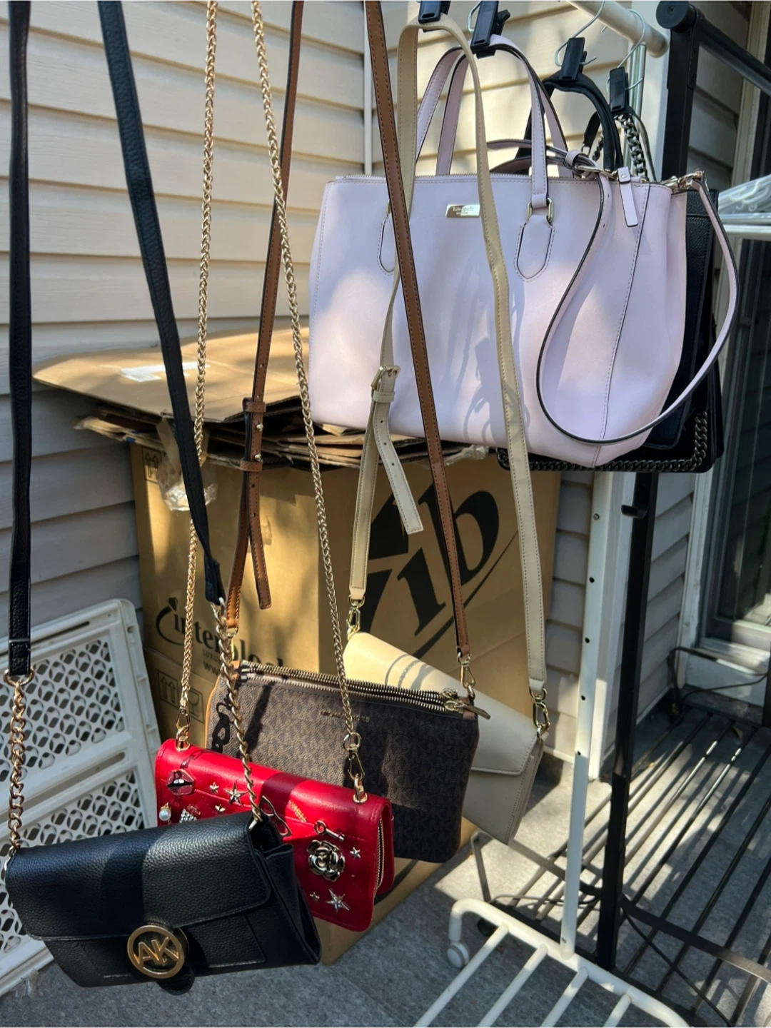 Clearing out my closet please for the price and for more photos price started from $20 to $100 depending of the bag A collection of gently used purses and handbags featuring brands like Michael Kors and Kate Spade all mostly brand new and use only once very clean inside and out. Pick up or deliver depending of ur purchases welcome to look in person Mk sold Tory sold Ak - 15 Red bag -15 Simon’s hand bag-20 Zara - 20 Kate spade pink - 80 Thank you