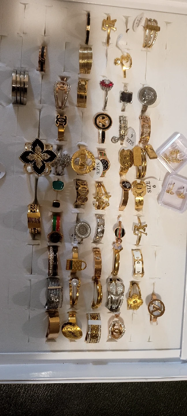 25I have a selection of rings and earrings available. Please take a look at the photos to see the various styles and designs. They're perfect for adding a touch of sparkle to any outfit! Feel free to message me with any questions or if you'd like to see more details