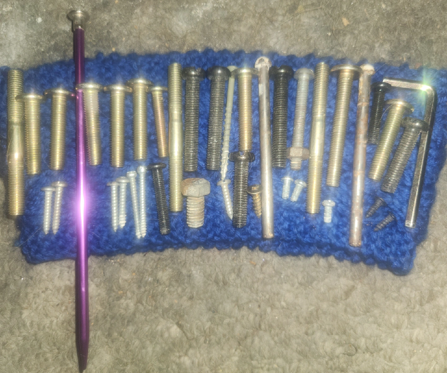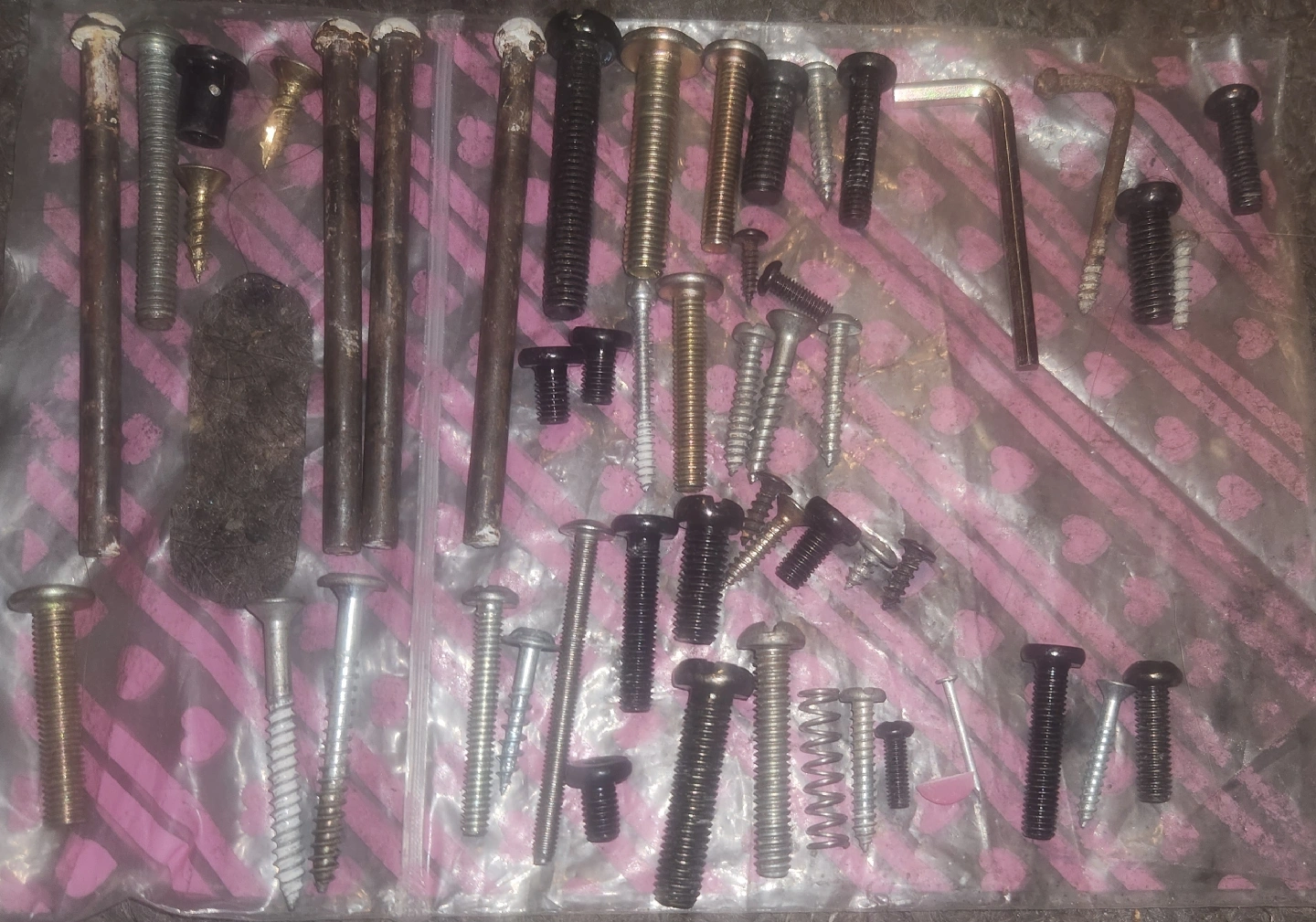 A collection of various screws, nails, and fasteners. Great for any DIY projects or repairs around the house. Pick up only.