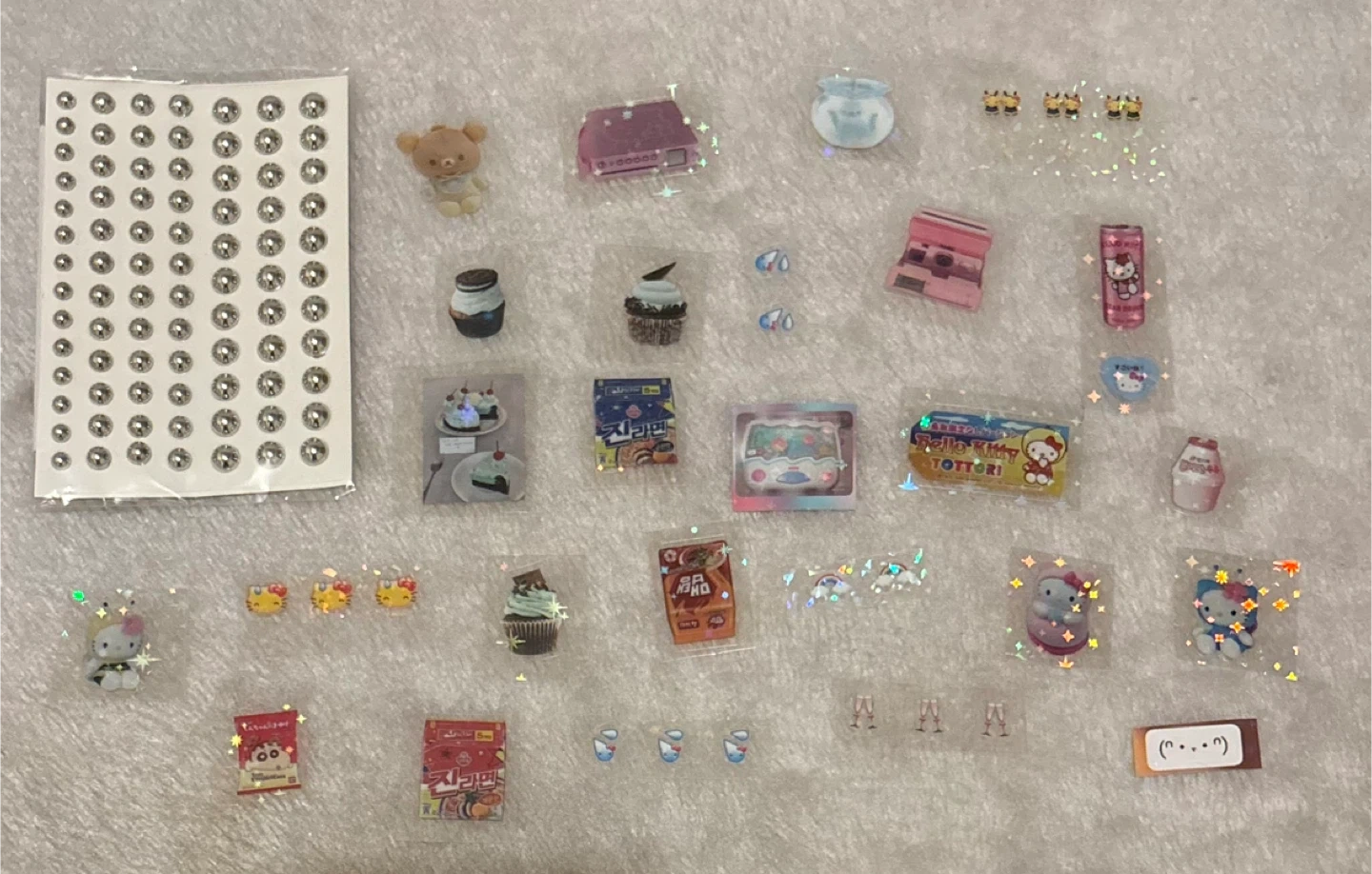 162A collection of super cute stickers! Im selling this stickers only for 0.50$ Perfect for decorating your notebooks, phone cases, or anything else you want to add a little kawaii flair to. There's a wide variety of designs, including Hello Kitty, Rilakkuma, and other adorable characters and images!
