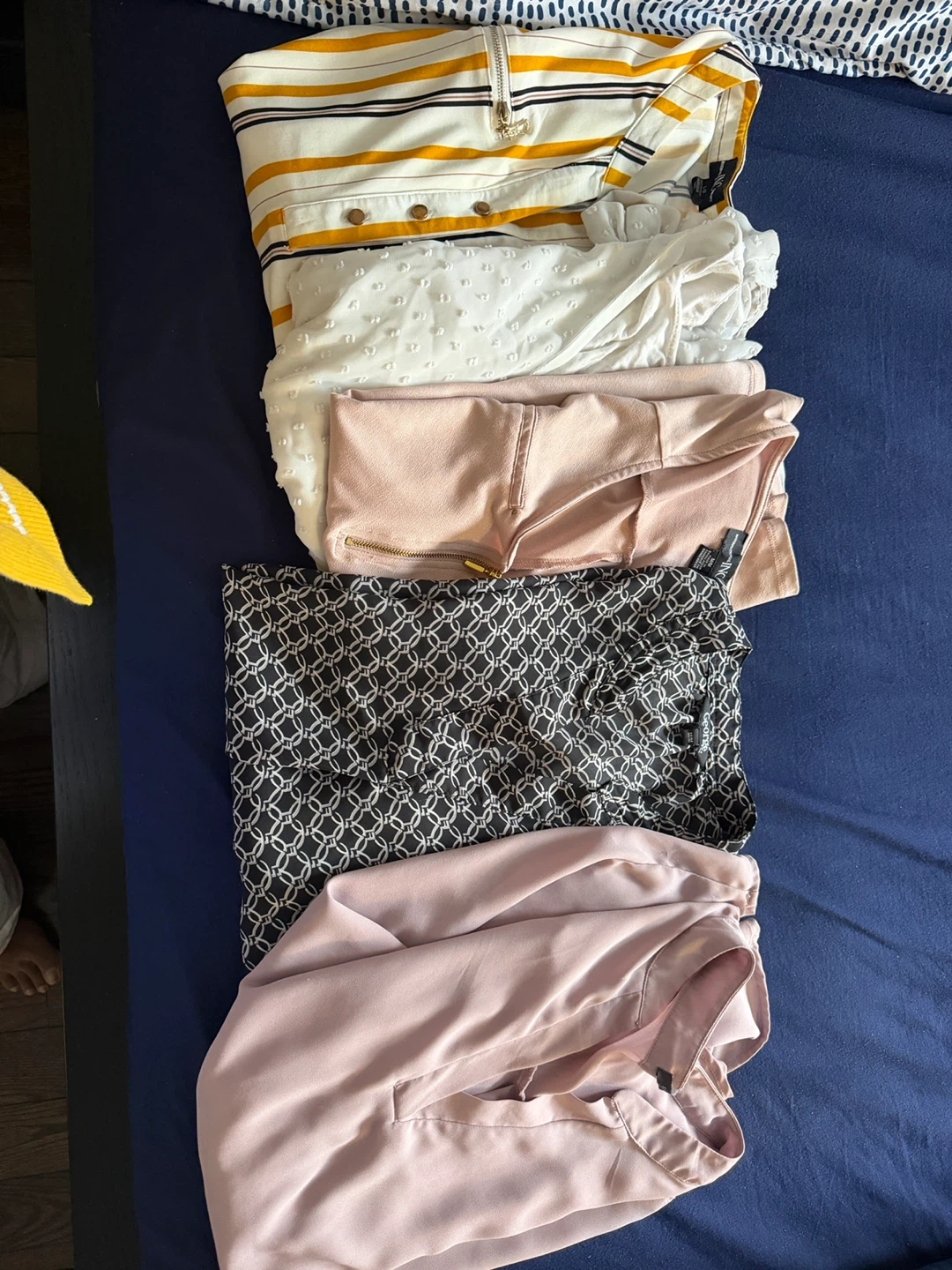 29Selling a bundle of assorted women's clothing. The bundle includes various tops and bottoms with different colours and patterns. Great for expanding your wardrobe! 3 flarepants 1 dress 5 tops