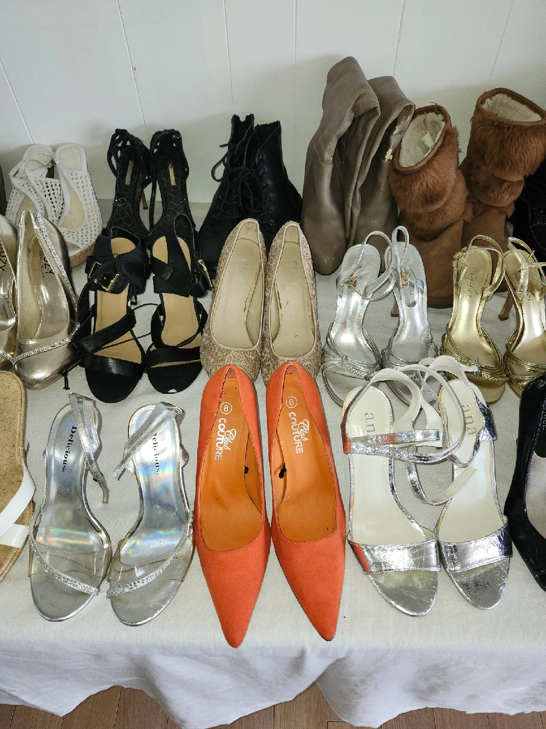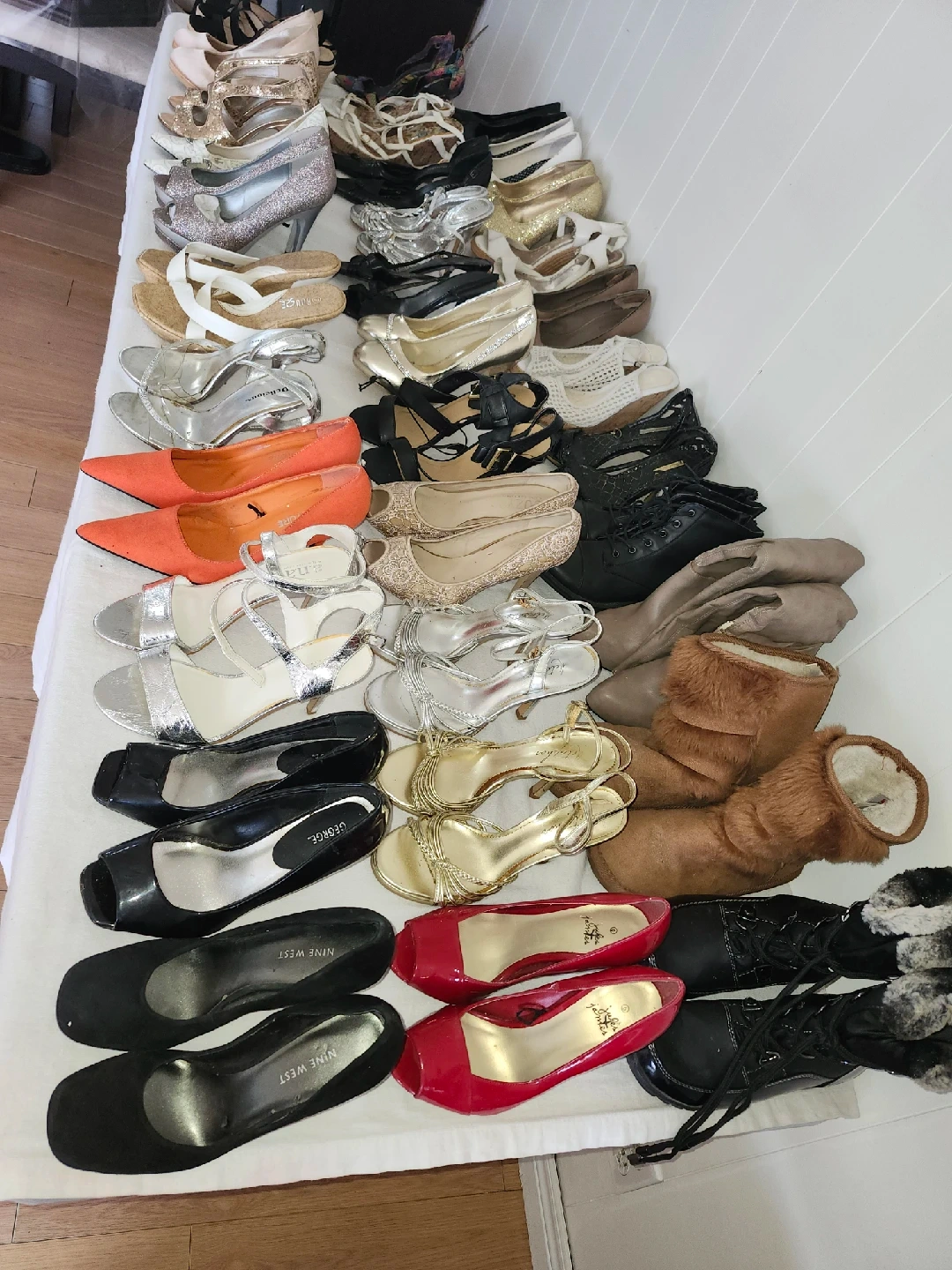 10A collection of assorted women's shoes in various styles and colours. Brands include Nine West, Suzy, and George. Perfect for expanding your shoe collection!