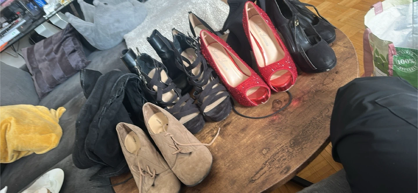 10Giving away a variety of women's shoes. Includes heels, sandals, and flats in various styles and colours. Please see photos for details and condition
