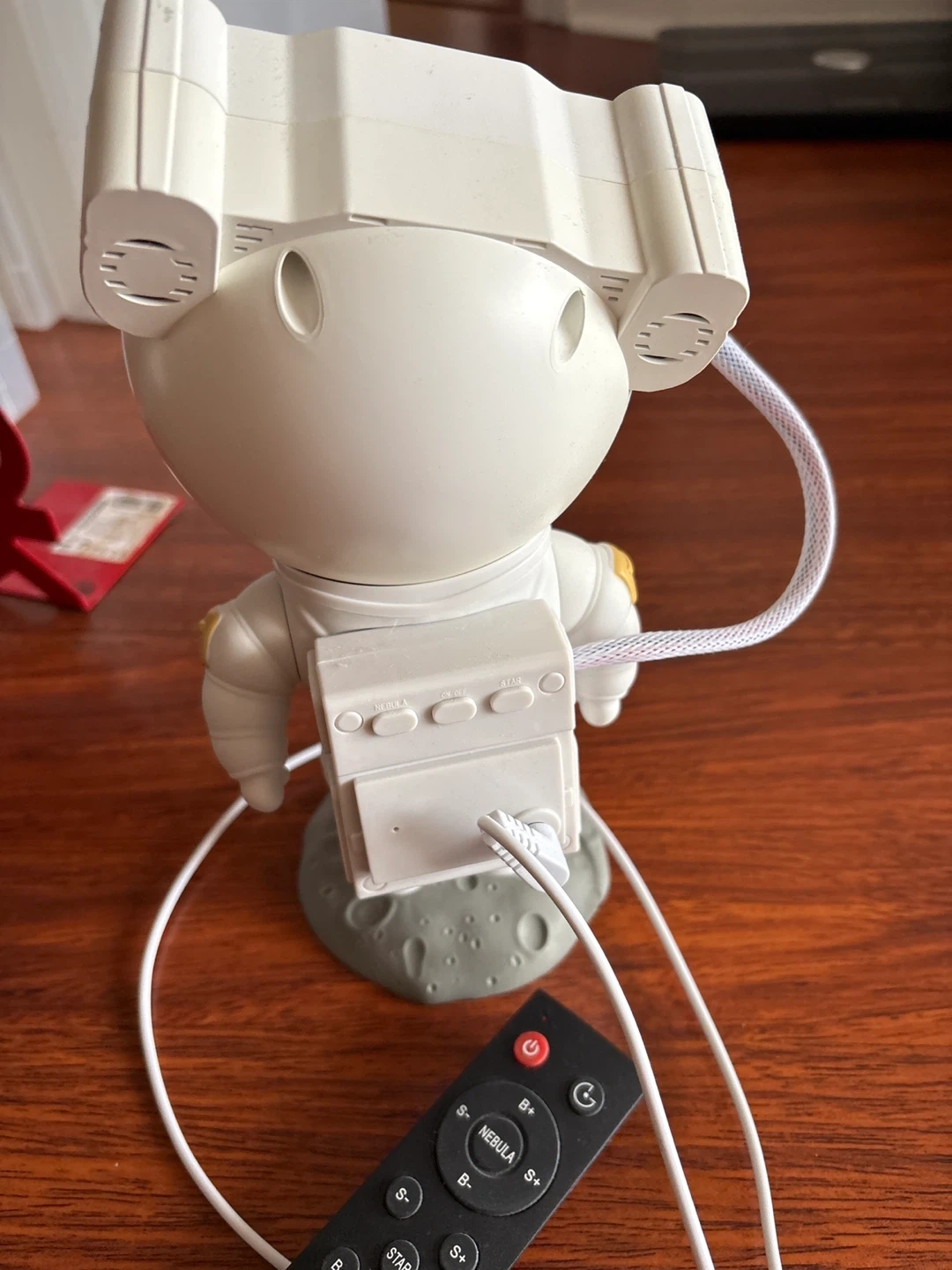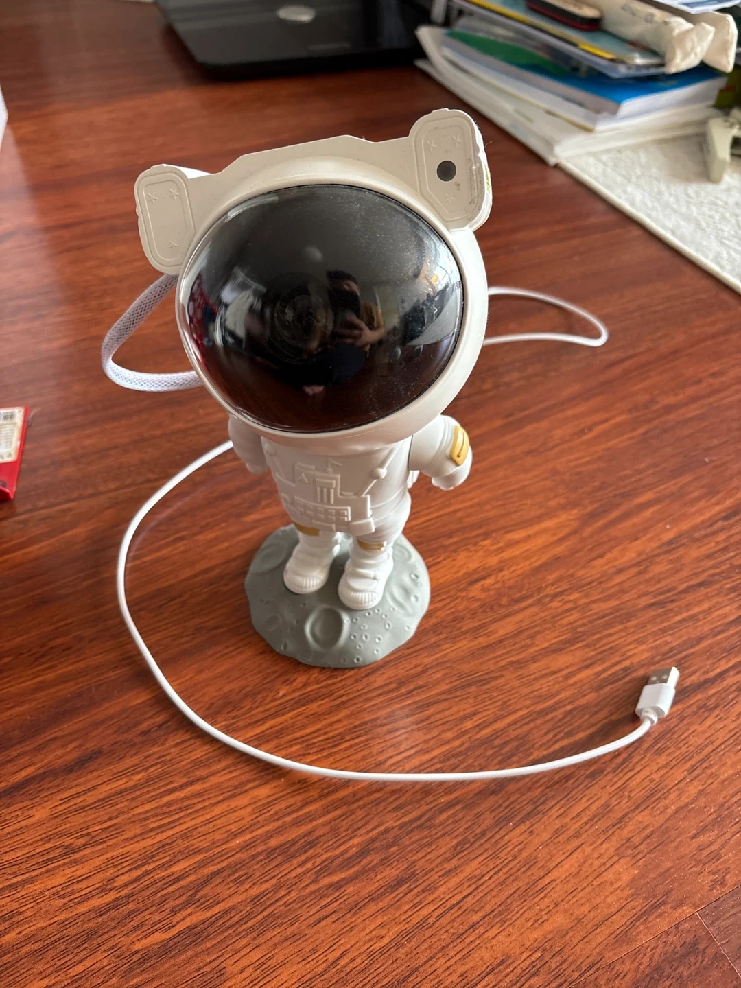 444I'm selling an astronaut-shaped galaxy projector night light. It's in great condition and would be perfect for a kid's room or anyone who loves space! It projects stars and nebulas, creating a relaxing atmosphere. It also comes with a remote control for easy adjustments