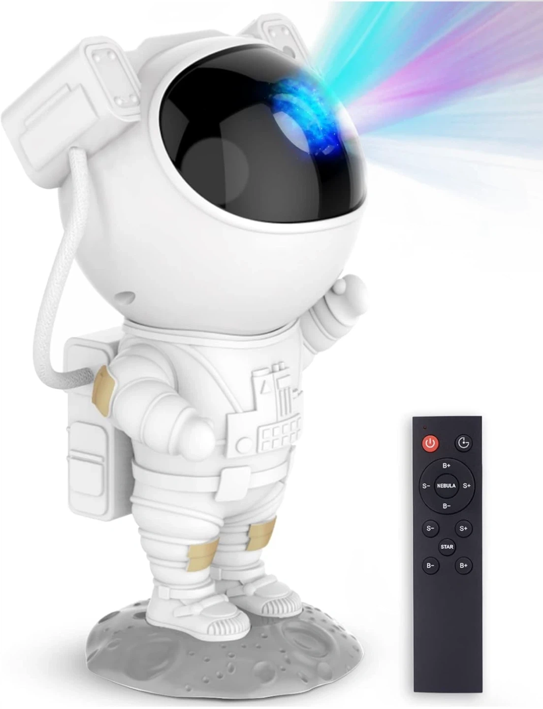 43Add a touch of wonder to any room with this astronaut starry sky projector! It projects beautiful stars and nebulae, creating a relaxing and magical atmosphere. Comes with a remote for easy control of the light settings and brightness. Box included