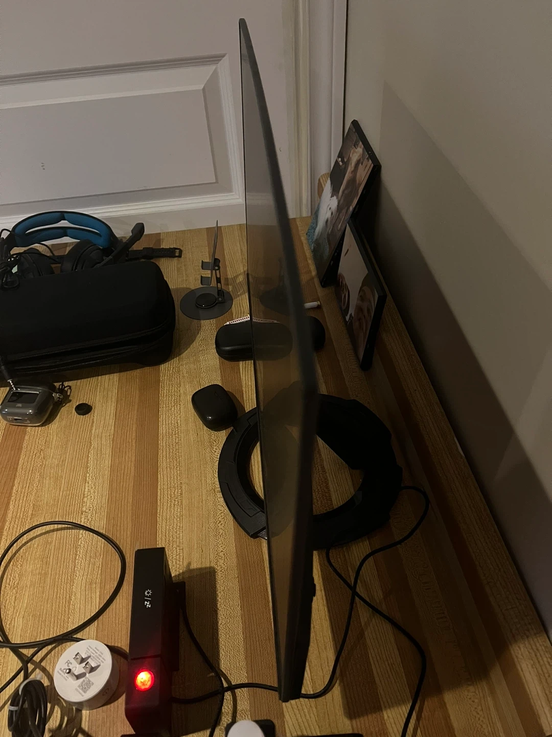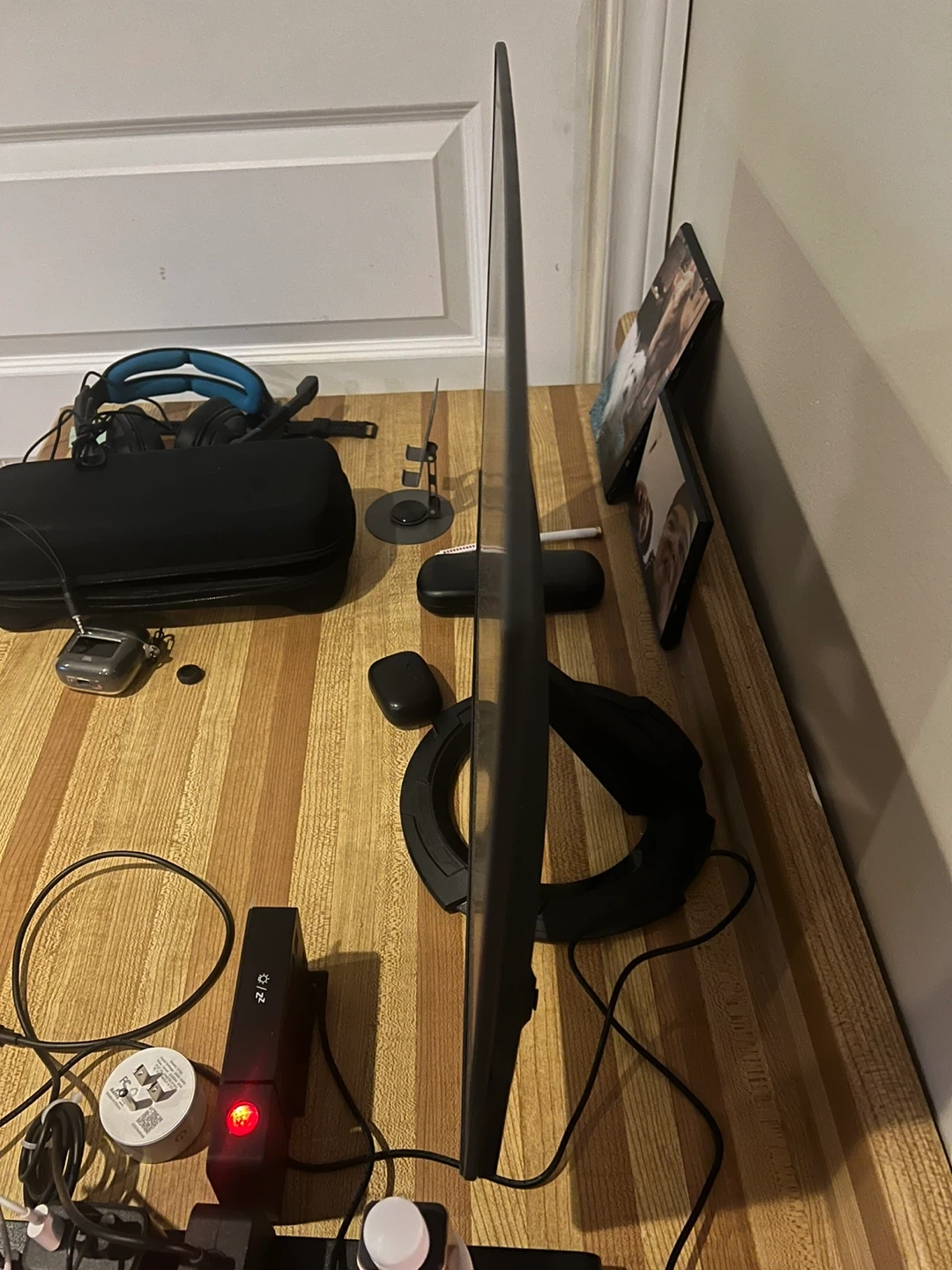 Desk, Lamp, Speakers, Monitor