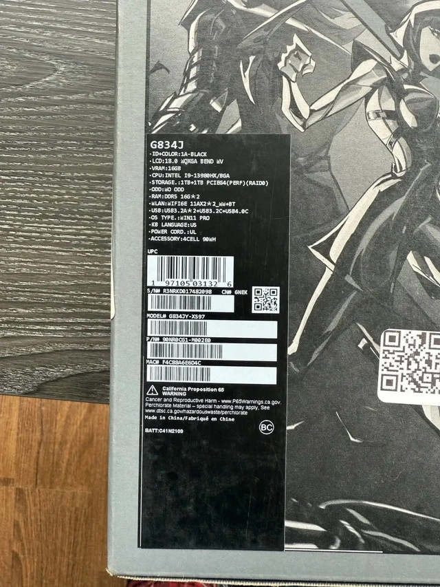 This laptop is in immaculate condition—virtually indistinguishable from brand-new. It has never left my desk and was always used with an external display, keyboard, and mouse. The built-in keyboard and touchpad are unused, and the screen is flawless. What's Included: ASUS ROG Strix SCAR 18 (G834JY-XS97) Original premium packaging ASUS 330W ROG power adapter Accessories included in the box (documentation, inserts, etc.) ⚙️ Key Specifications: CPU: Intel Core i9-13980HX (24-core, up to 5.6GHz) GPU: NVIDIA GeForce RTX 4090 GPU (16GB GDDR6) Display: 18” QHD+ Nebula Display (2560 x 1600, 16:10) 240Hz refresh rate / 3ms response time 100% DCI-P3, G-SYNC, Dolby Vision RAM: 32GB DDR5-4800 (2x16GB) Storage: 2TB (2x 1TB PCIe 4.0 NVMe SSDs in RAID 0) OS: Windows 11 Pro Wireless: Wi-Fi 6E, Bluetooth 5.2 Camera: FHD 1080p Ports: 2x USB 3.2 Gen 2 Type-A 2x USB 3.2 Gen 2 Type-C (one with DisplayPort & Power Delivery) HDMI 2.1 RJ-45 Ethernet port 3.5mm combo audio jack Barely used and always kept in a clean, static workspace No travel—non-smoking, pet-free environment Ideal for gamers, creators, and professionals who want unmatched power and a spotless device. Newer 50-series are $6,499+13%=7348, which is only 15% faster.