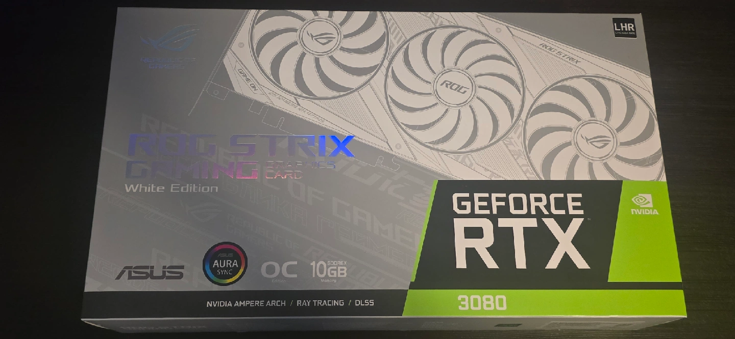 10Selling an ASUS ROG Strix GeForce RTX 3080 White Edition graphics card. It comes with the original box. This graphics card features NVIDIA Ampere architecture and Ray Tracing / DLSS technologies.