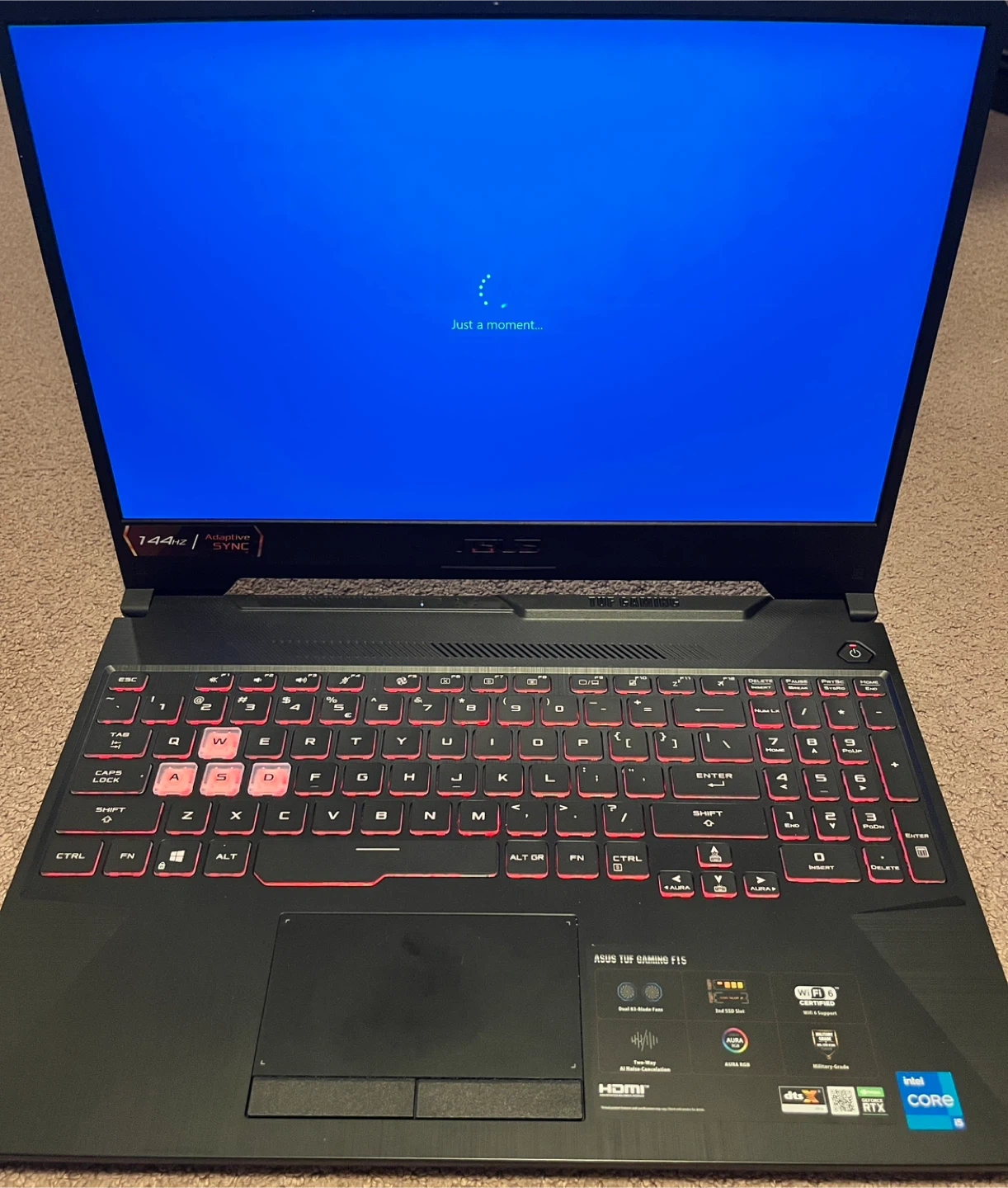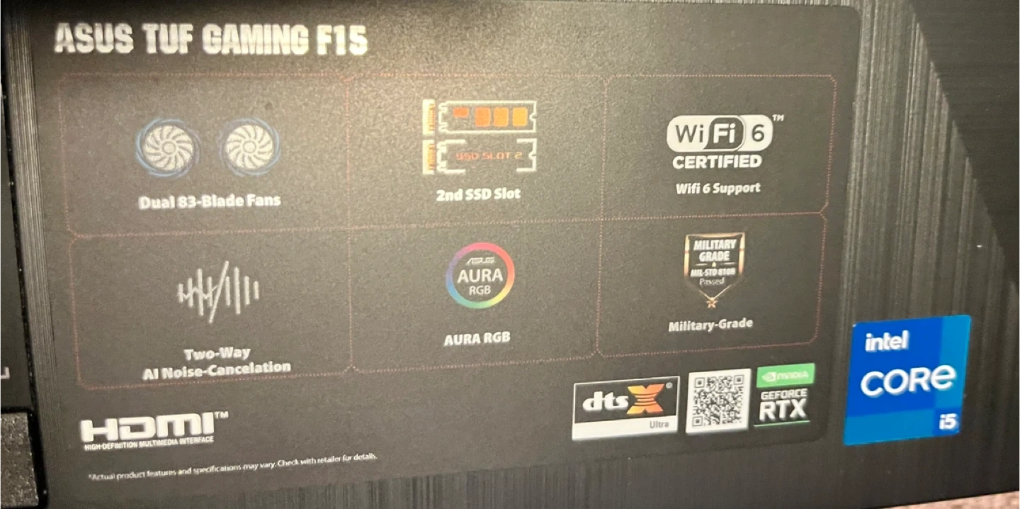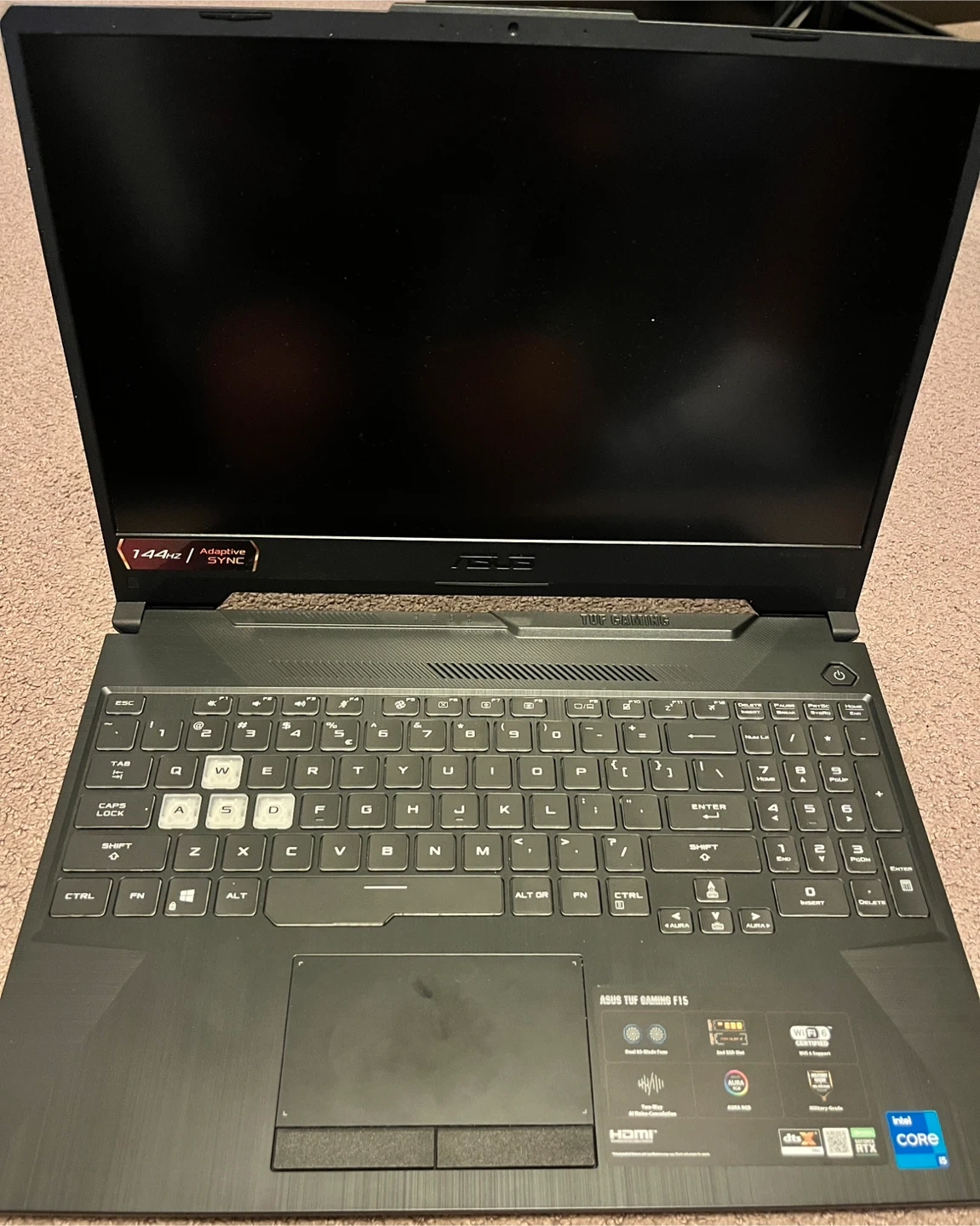 Asus tuf 15’ gaming laptop 144hz screen nvidia 3050 ti gpu intel i5 11400H cpu 16gb ram 512gb ssd