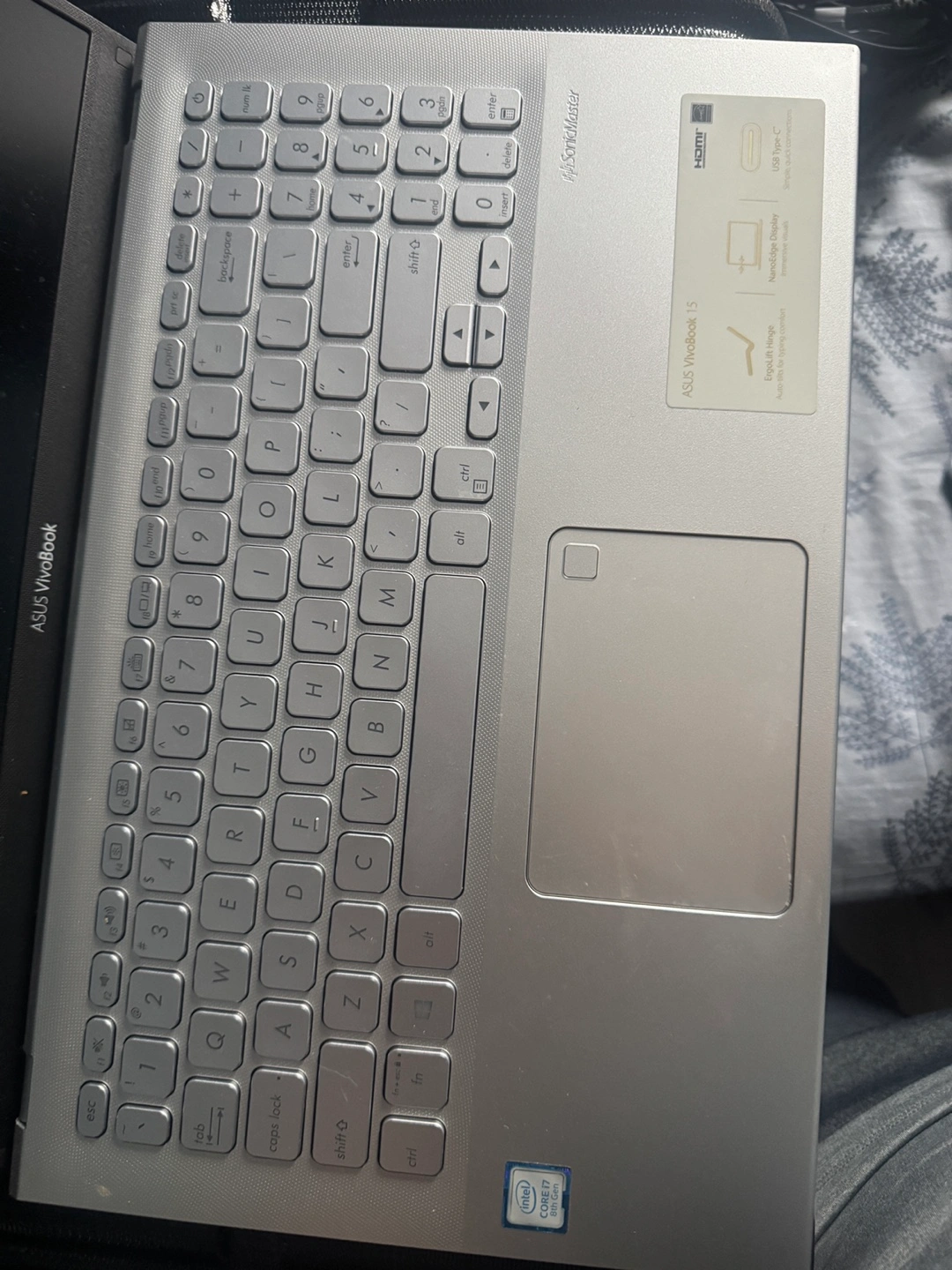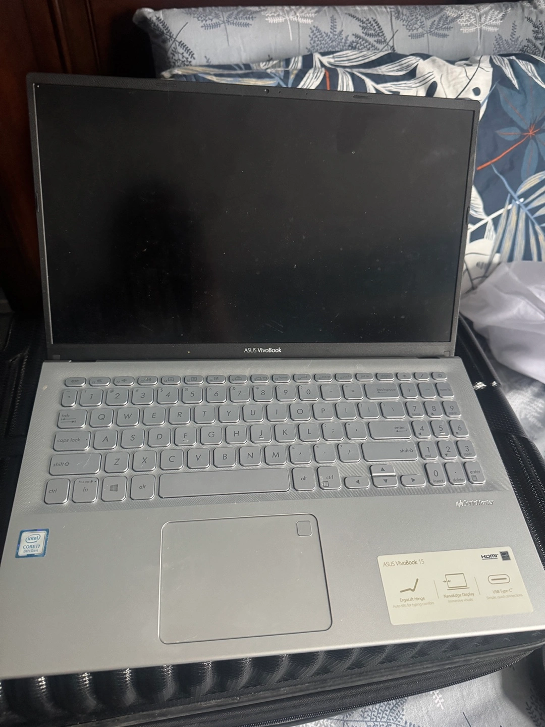 68Silver ASUS Vivobook 15 laptop. Includes a brown laptop carrying bag. Great for students or professionals. Mouse pad doesnt work but gets the job done with mouse