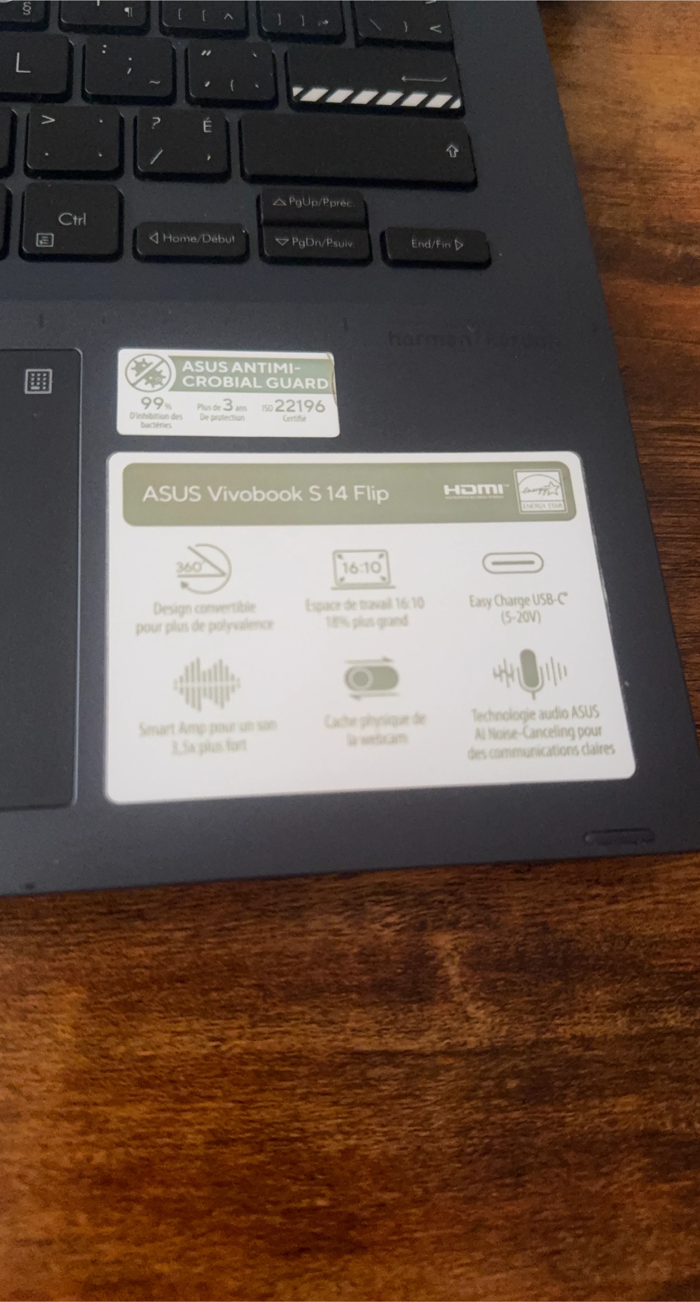 Selling an ASUS Vivobook S 14 Flip. This laptop features a 360° design, making it convertible for different uses. It also has an easy charge USB-C port. Great for anyone needing a versatile and portable laptop!