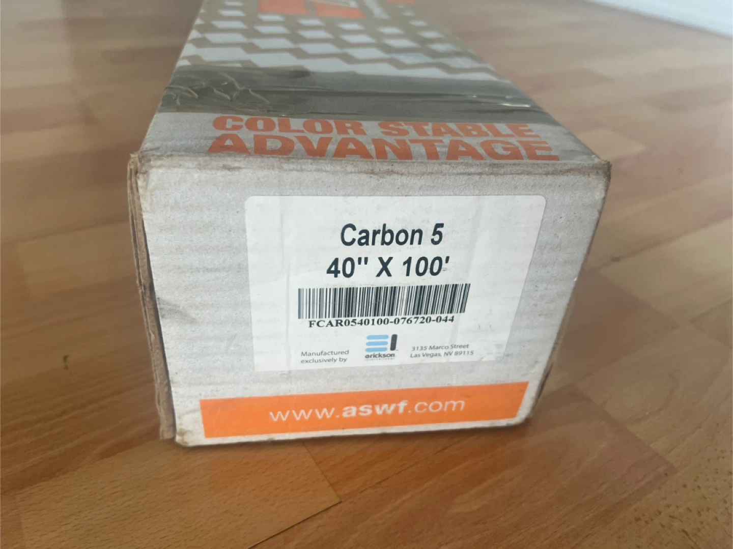15Selling a roll of ASWF Carbon 5 window film. It's 40 inches by 100 feet and comes in the original box. Perfect for tinting car windows or other glass surfaces!
