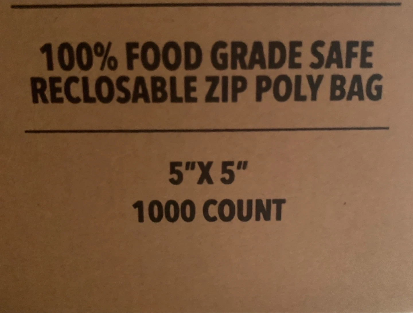 1000 Count 5"x5" Food Grade Reclosable Zip Poly Bags