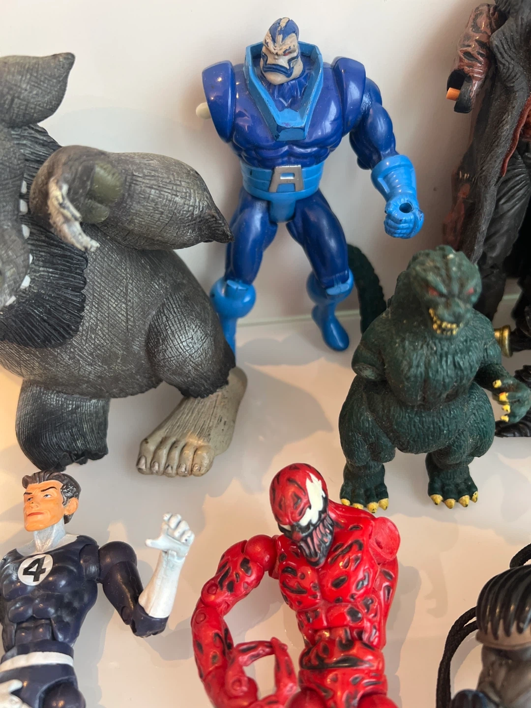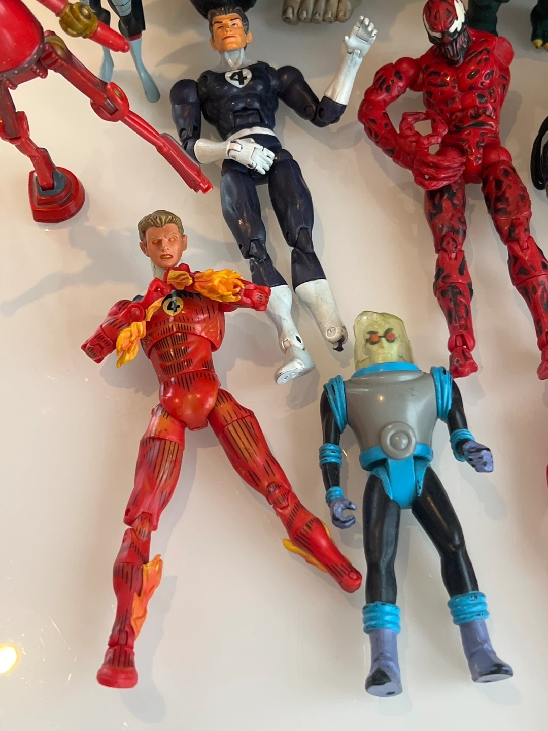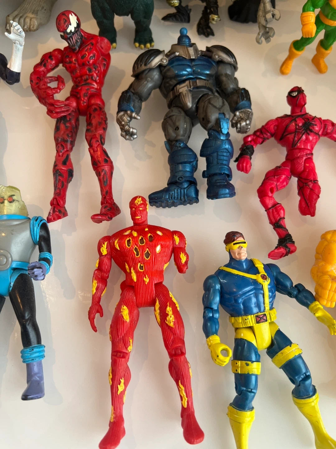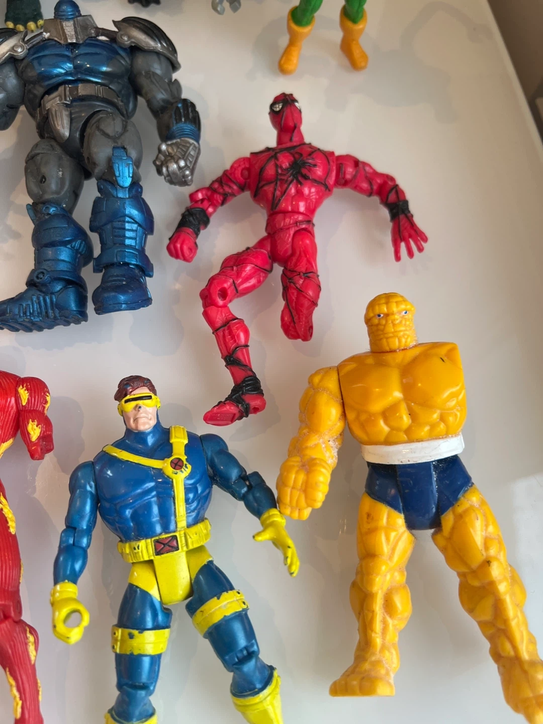 Collection of Marvel action figures featuring various characters. These toys are suitable for fans and collectors. Plastic construction.