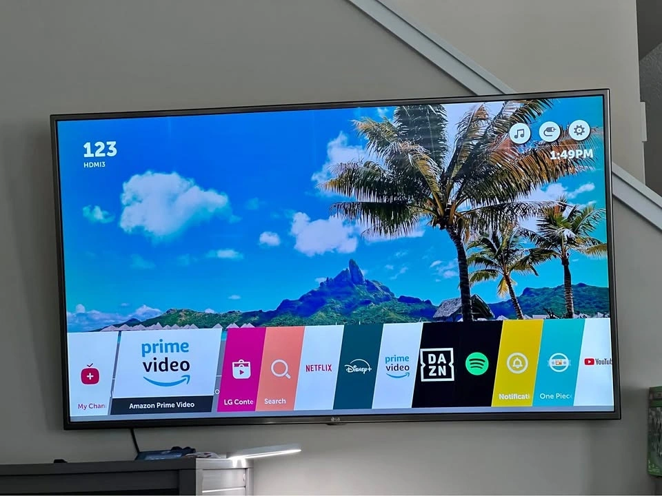 3 HDMI ports, 3 USB ports, 1 LAN port. TV is in perfect, working condition. Remote has some wear and damage but works. You can replace it with a new universal remote if needed. Includes wall mount and stand (stand not pictured)