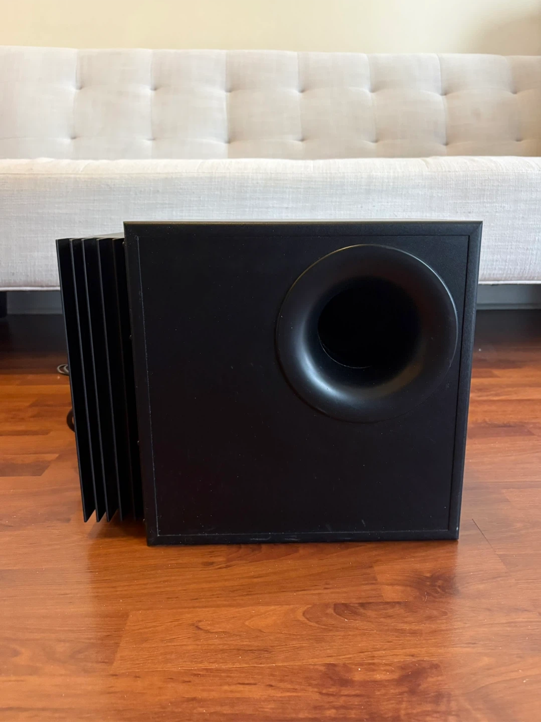 The only thing missing is the rubber foot on the bottom of the subwoofer (see extra photos)