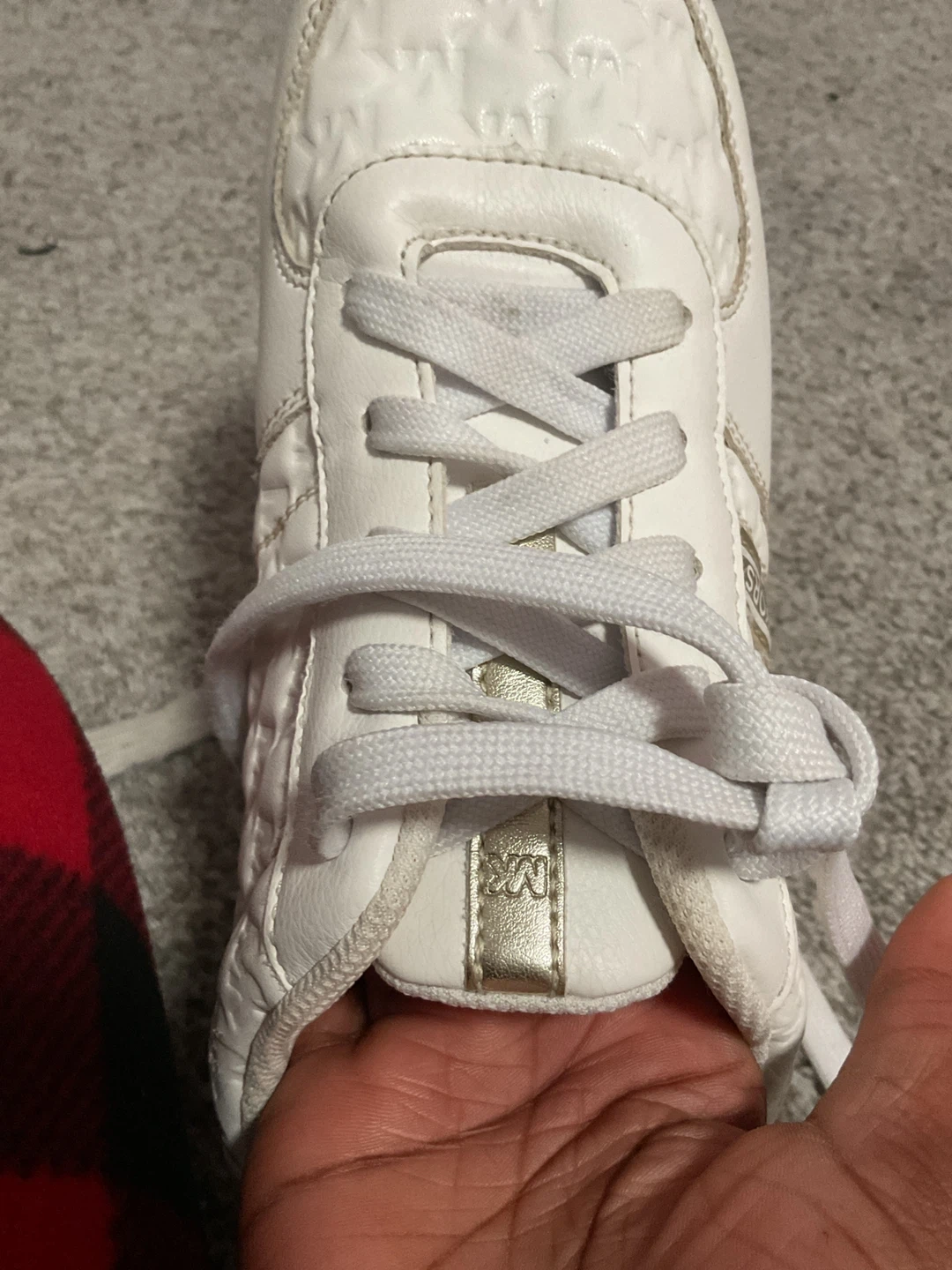 Selling a pair of well used Michael Kors sneakers! They're a size 6 with white and