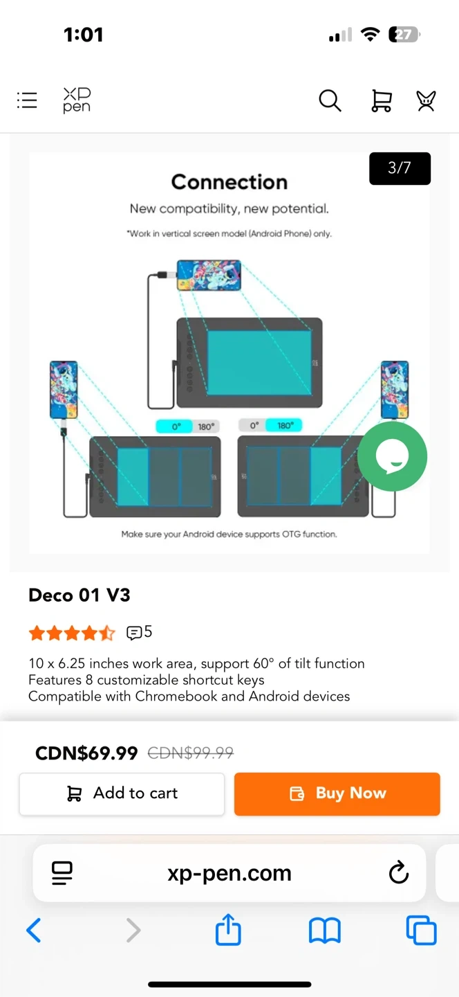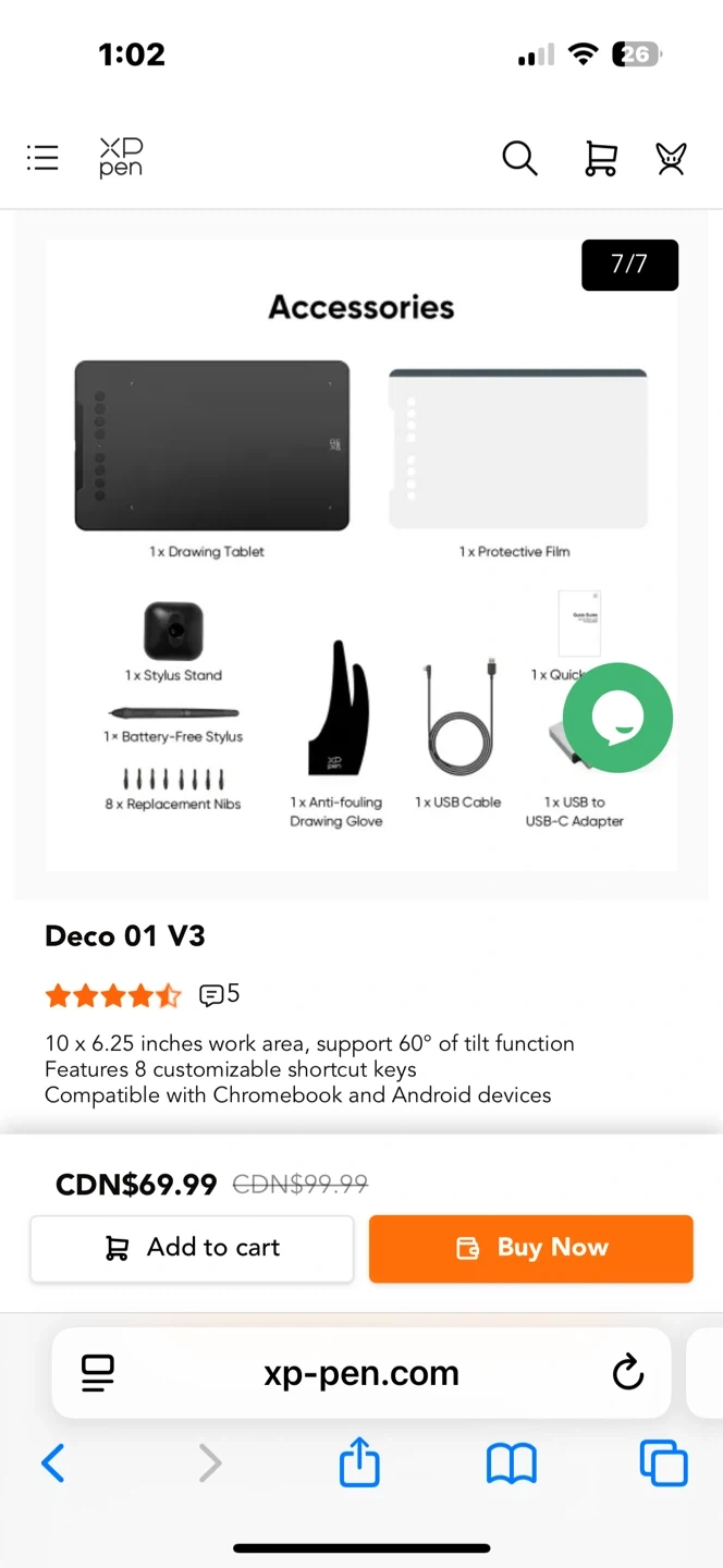 This XP-Pen Deco 01 V3 drawing tablet has a 10 x 6.25 inches work area and supports up to 60° of tilt function. It features 8 customizable shortcut keys and is compatible with Chromebook and Android devices.