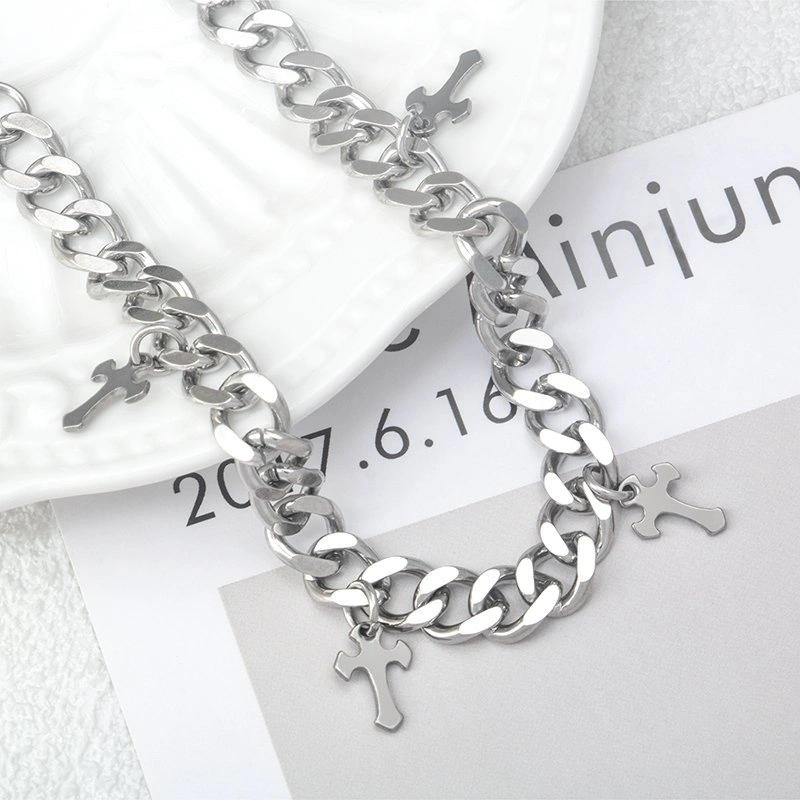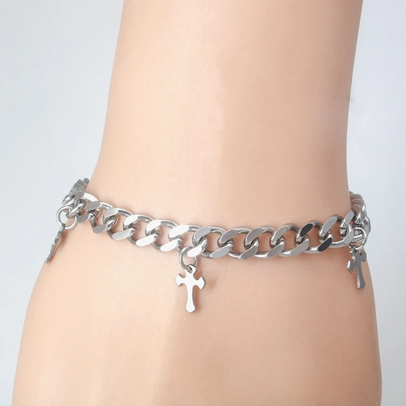 Unisex Stainless Steel Cross Cuban Link Bracelet