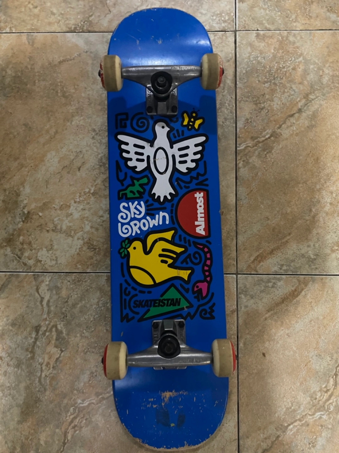 Used Almost Skateboards deck. Features Sky Brown graphic. Some wear and tear. price may be negotiable, dropped the hobby of skateboarding so i want to get rid of it.