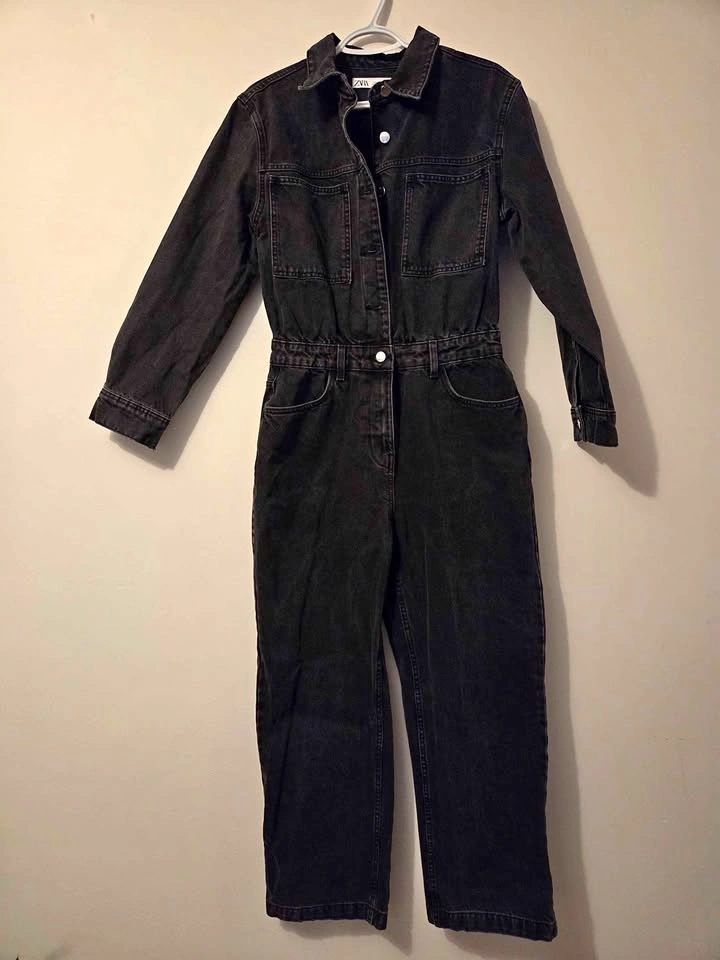 Zara black denim jumpsuit. Has long sleeves, button front, and flattering waist. US size Large. So cute! Pick up near St Clair West and Christie St. If listing is up, it's still available. Other clothes and household items available. If you see two or more you'd like, let me know for a bundle deal!