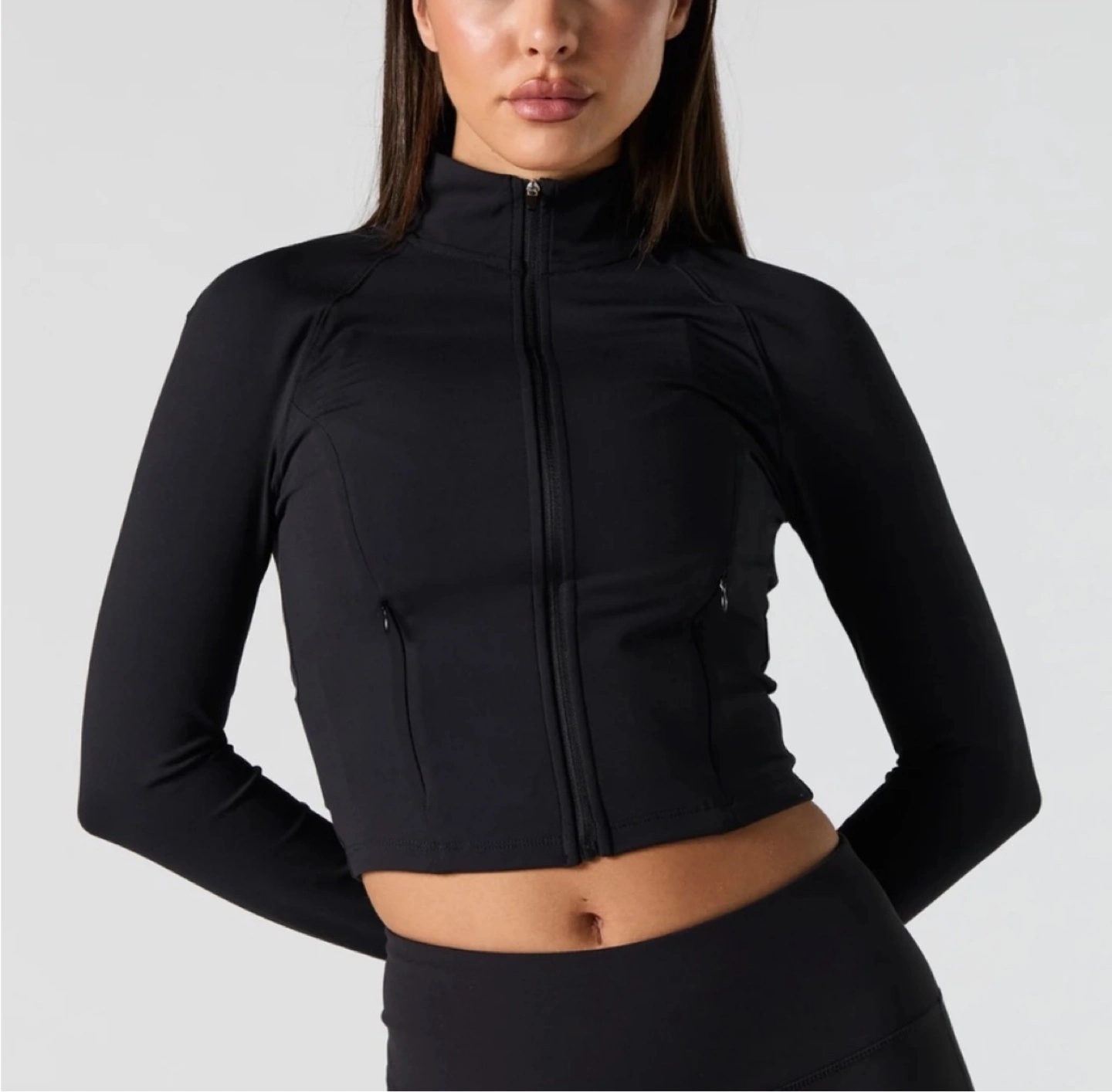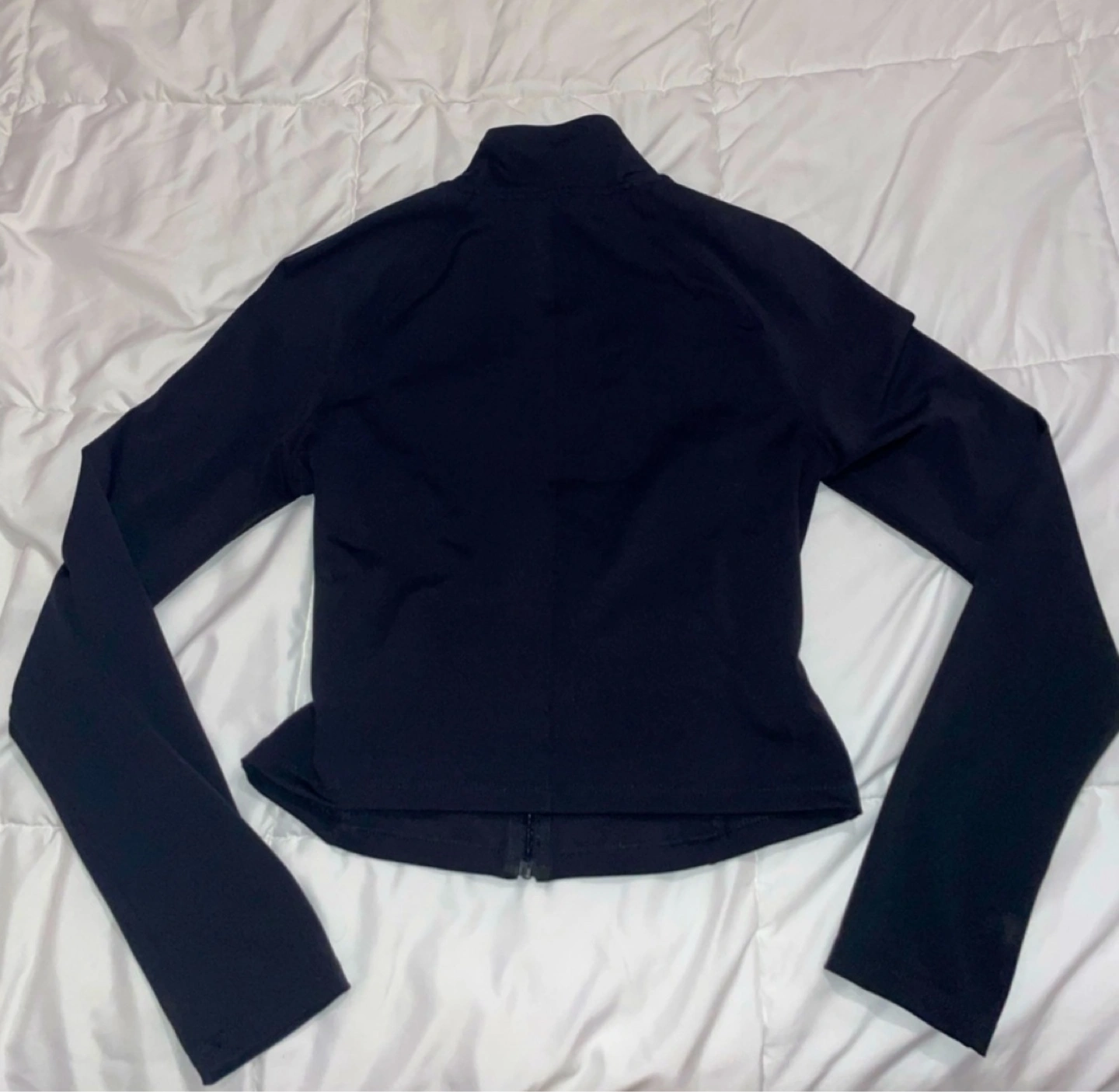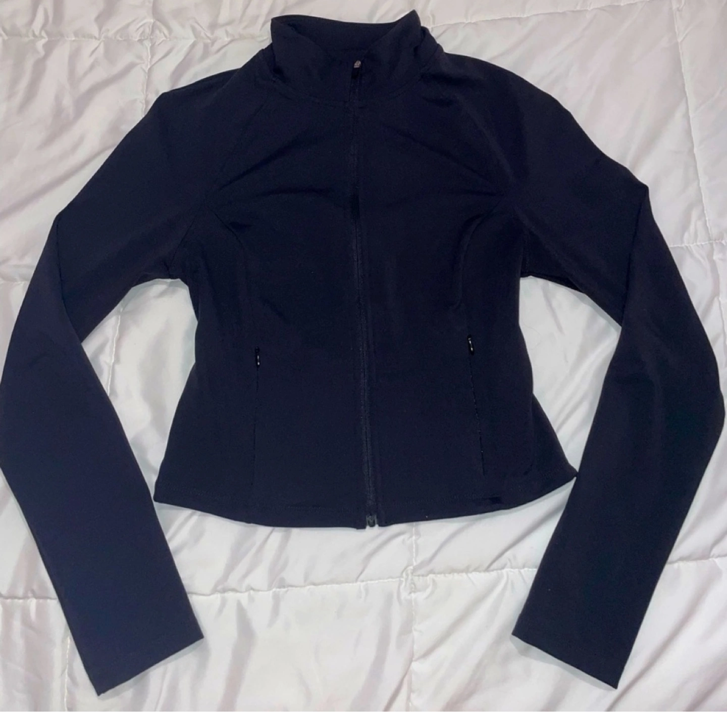Black athletic zip up jacket Long sleeves Full zip closure Never worn excellent condition Womens size large