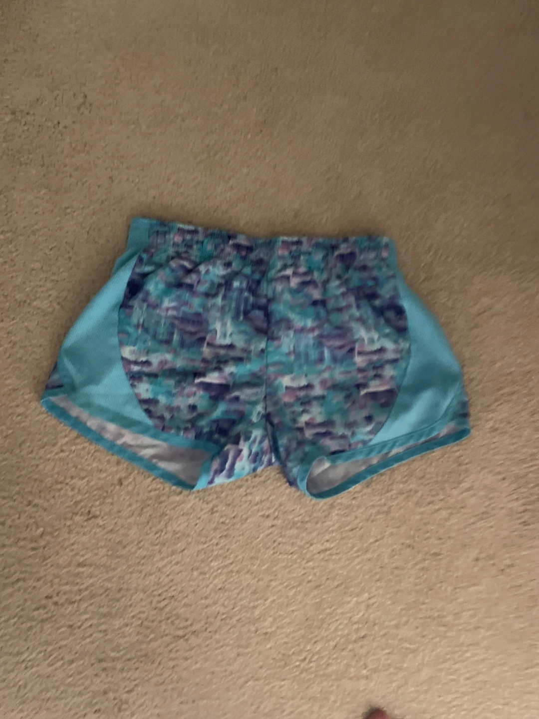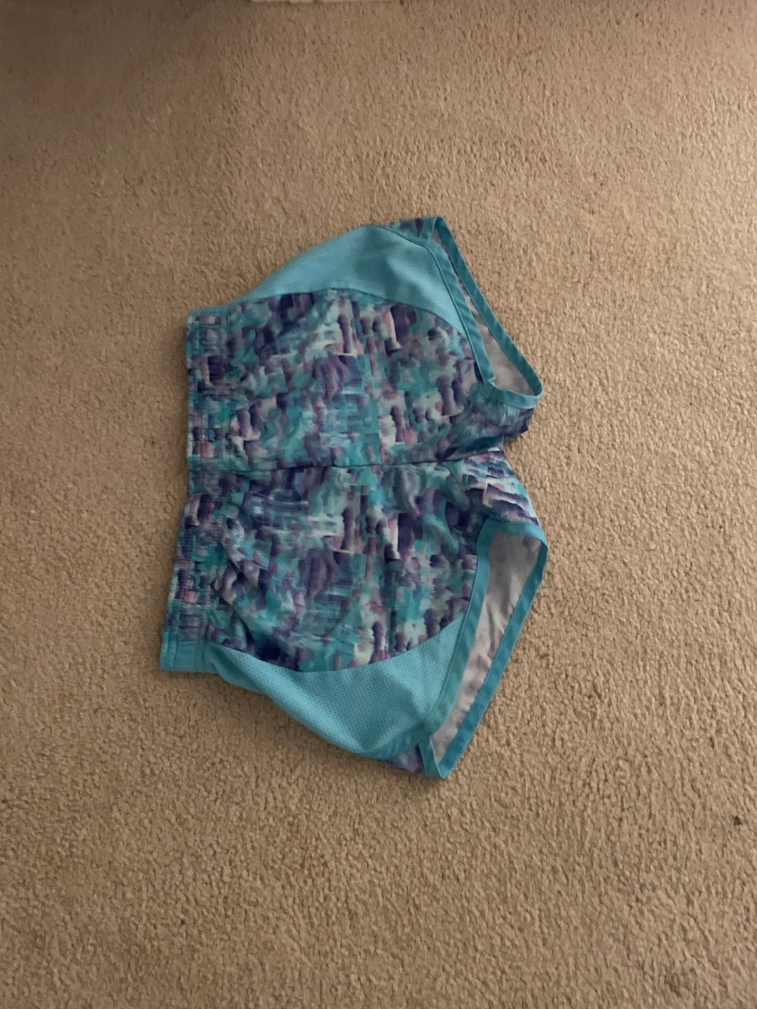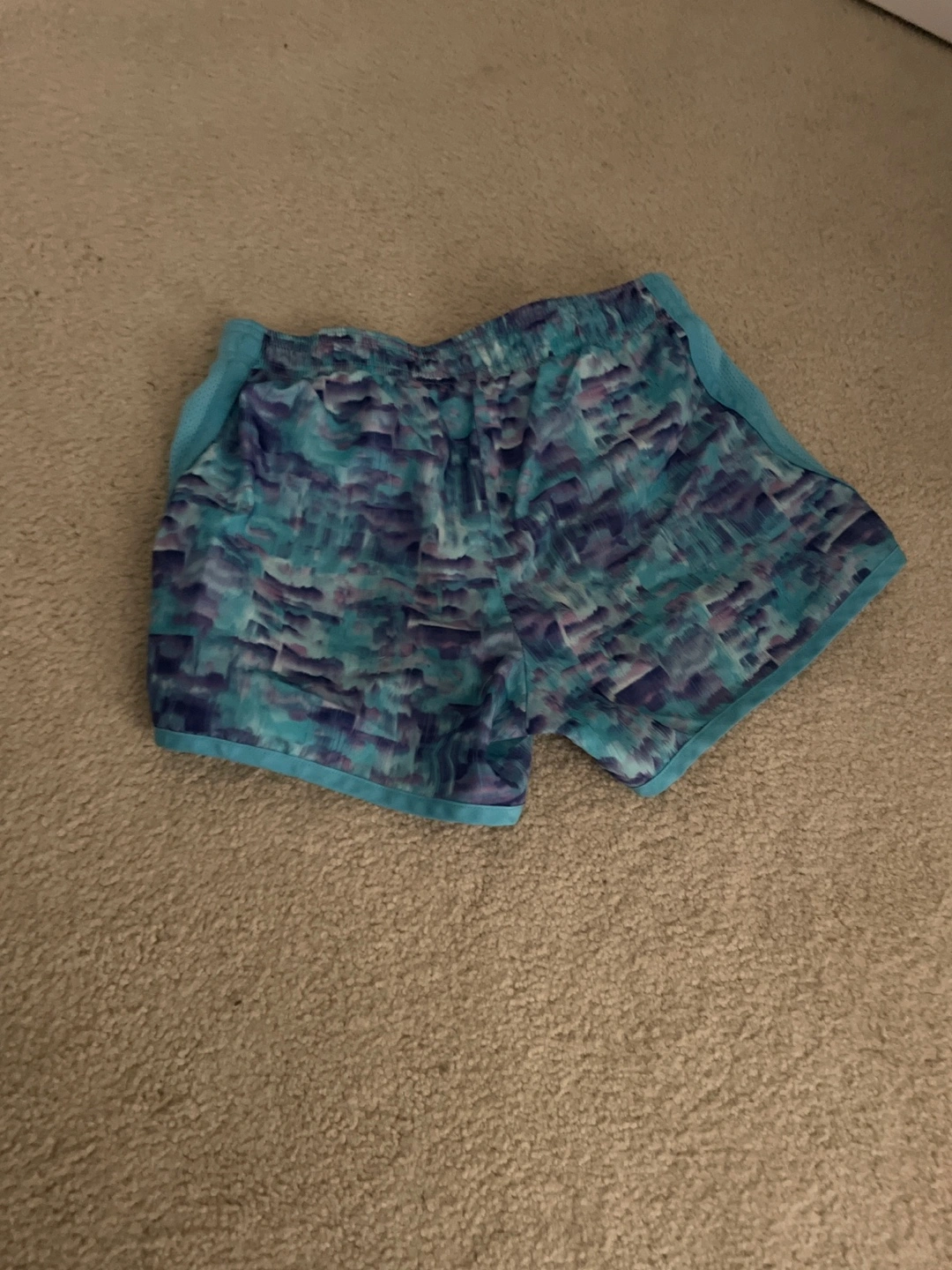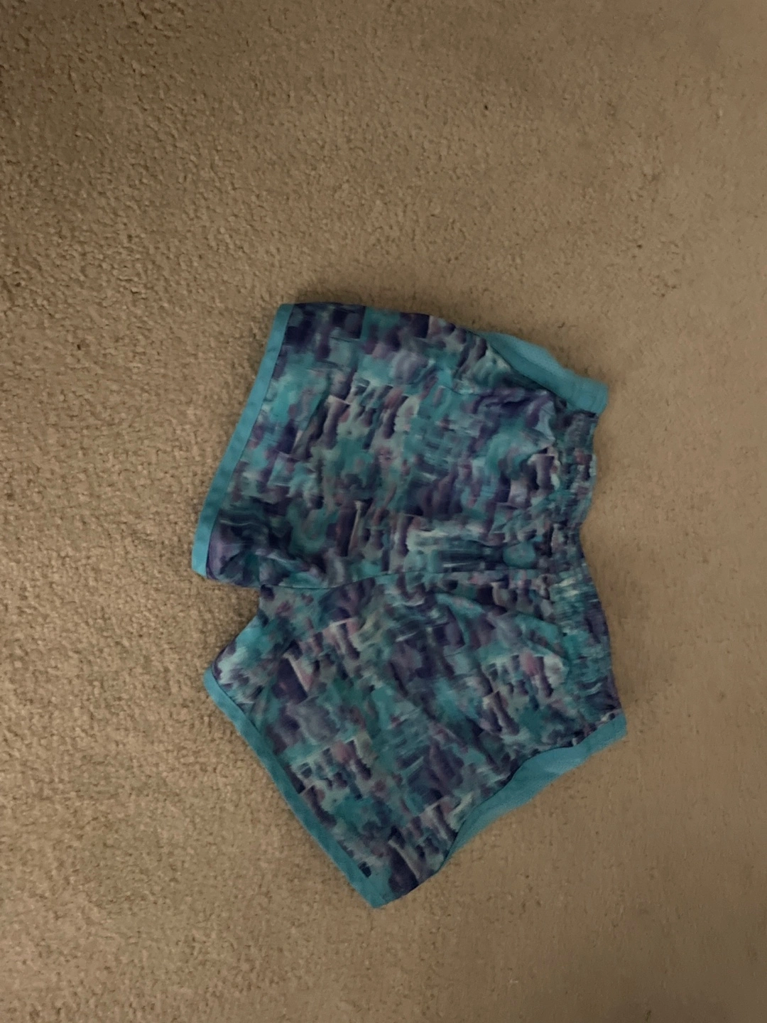 Selling a pair of athletic running shorts with a unique blue pattern. They're in great shape and ready for your next workout. Perfect for running, jogging, or any fitness activity!