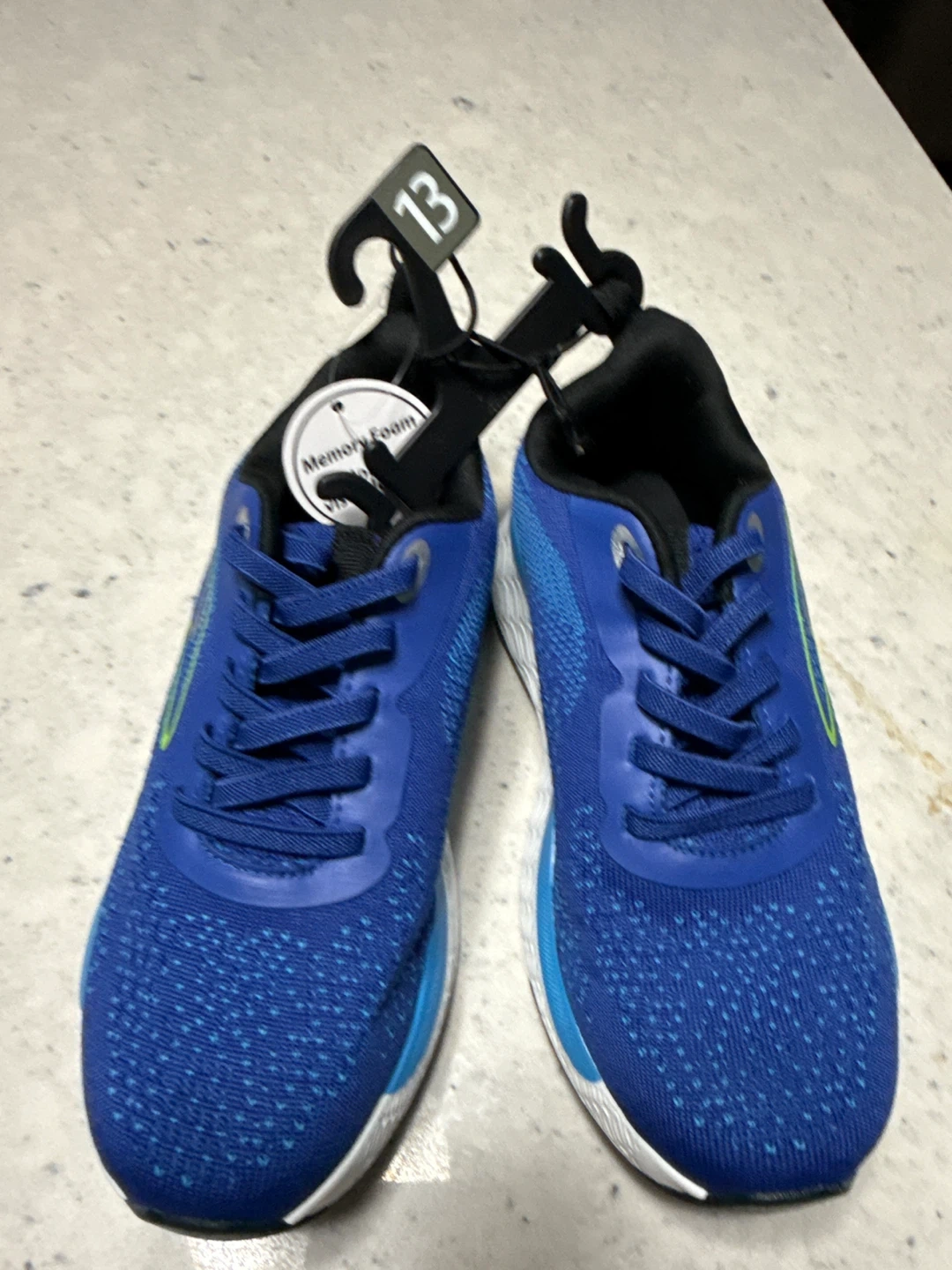 New Athletic Works running shoes in a vibrant blue colour! They come in size 13 and feature a comfortable memory foam insole. Perfect for running or everyday wear