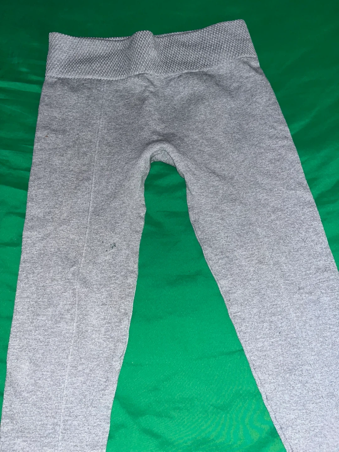 217Selling a pair of Athletic Works leggings in size medium! They have a pretty floral pattern in shades of grey, blue, and peach. The material is 88% polyester and 12% spandex, making them super comfy for workouts or just lounging around