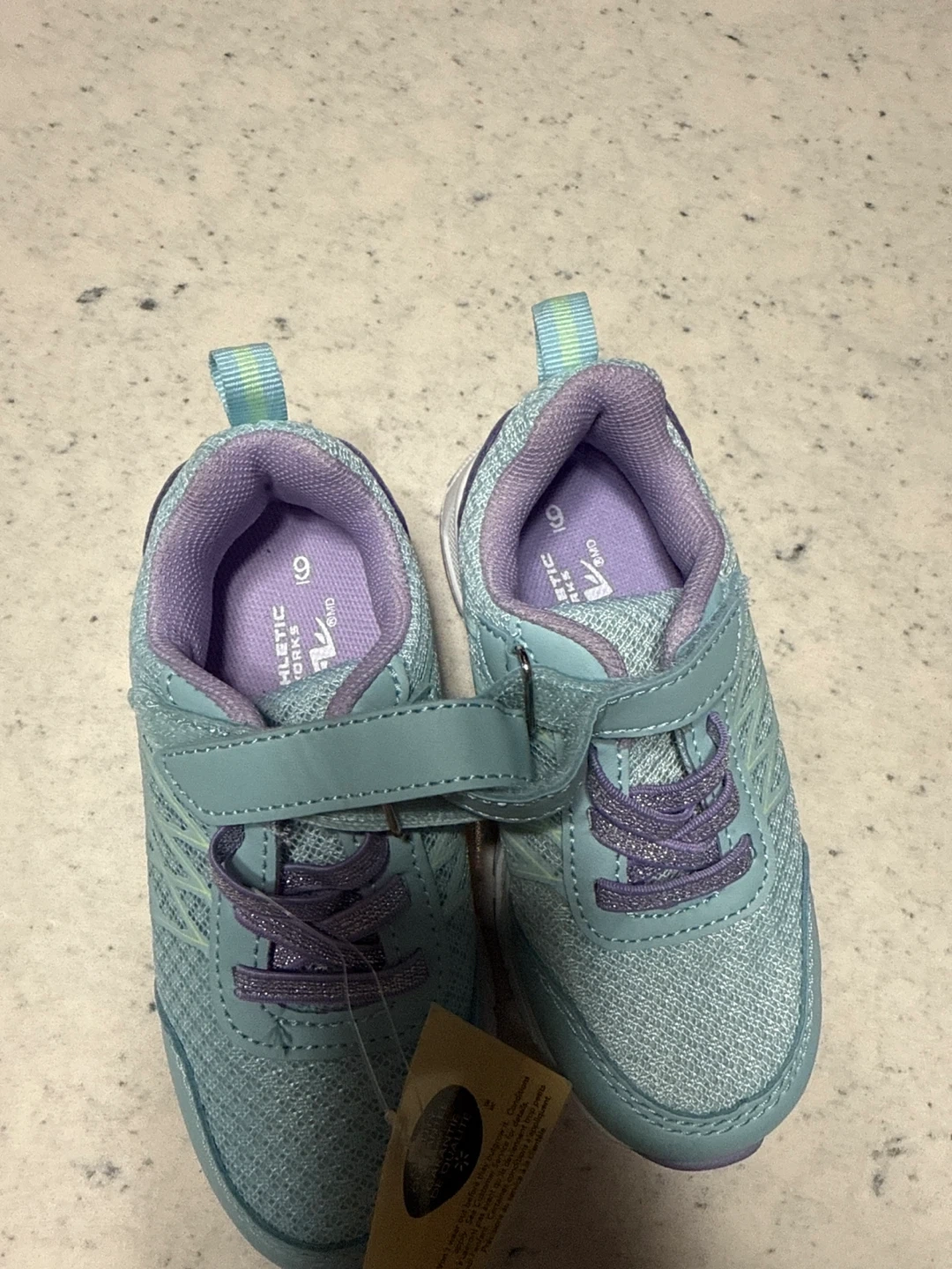 These Athletic Works toddler sneakers are brand new with tags! They’re a size 9 and feature a cute light blue and purple colour scheme. Perfect for your little one's adventures