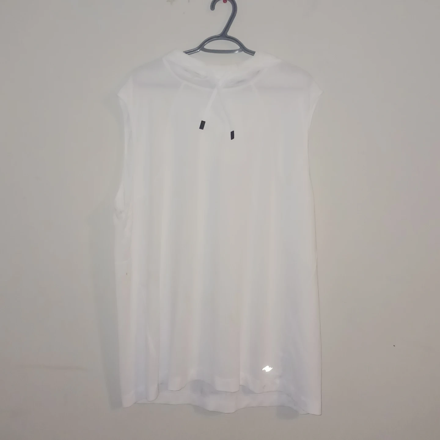 26Selling a white sleeveless hoodie from Athletic Works in size 2XL. It's made of 93% recycled polyester and 7% spandex. Perfect for workouts or casual wear!