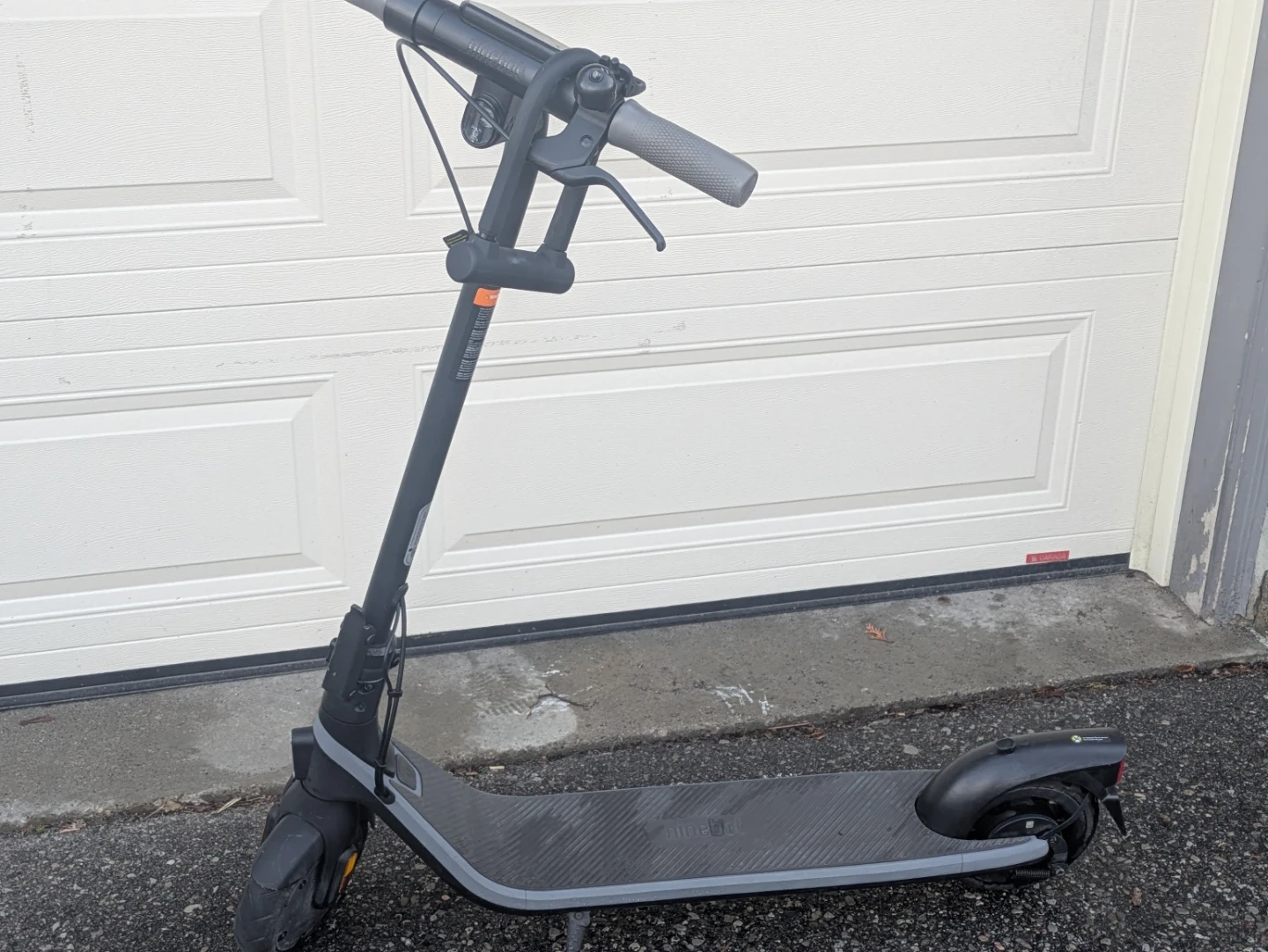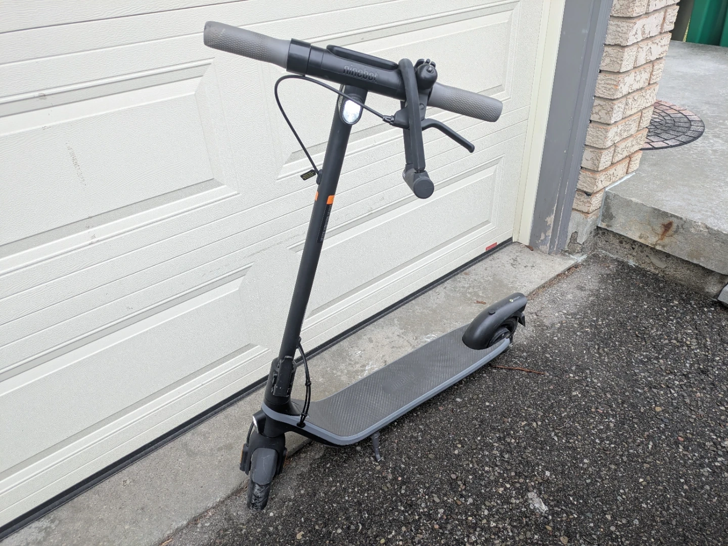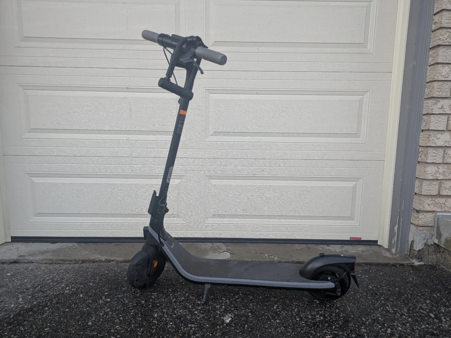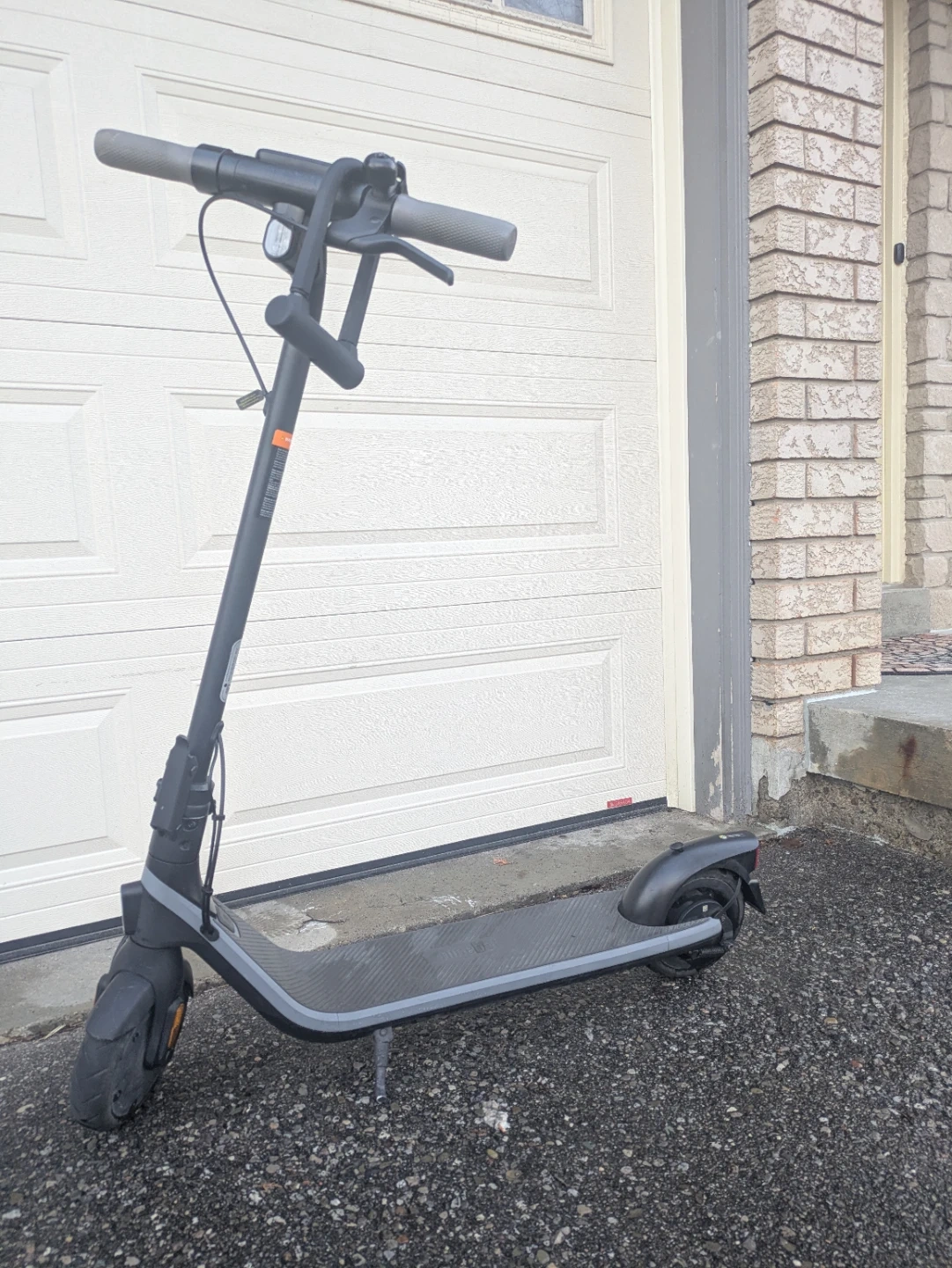 Segway Ninebot electric kickscooter. This model is grey. It's a great way to get around! Really good for starter