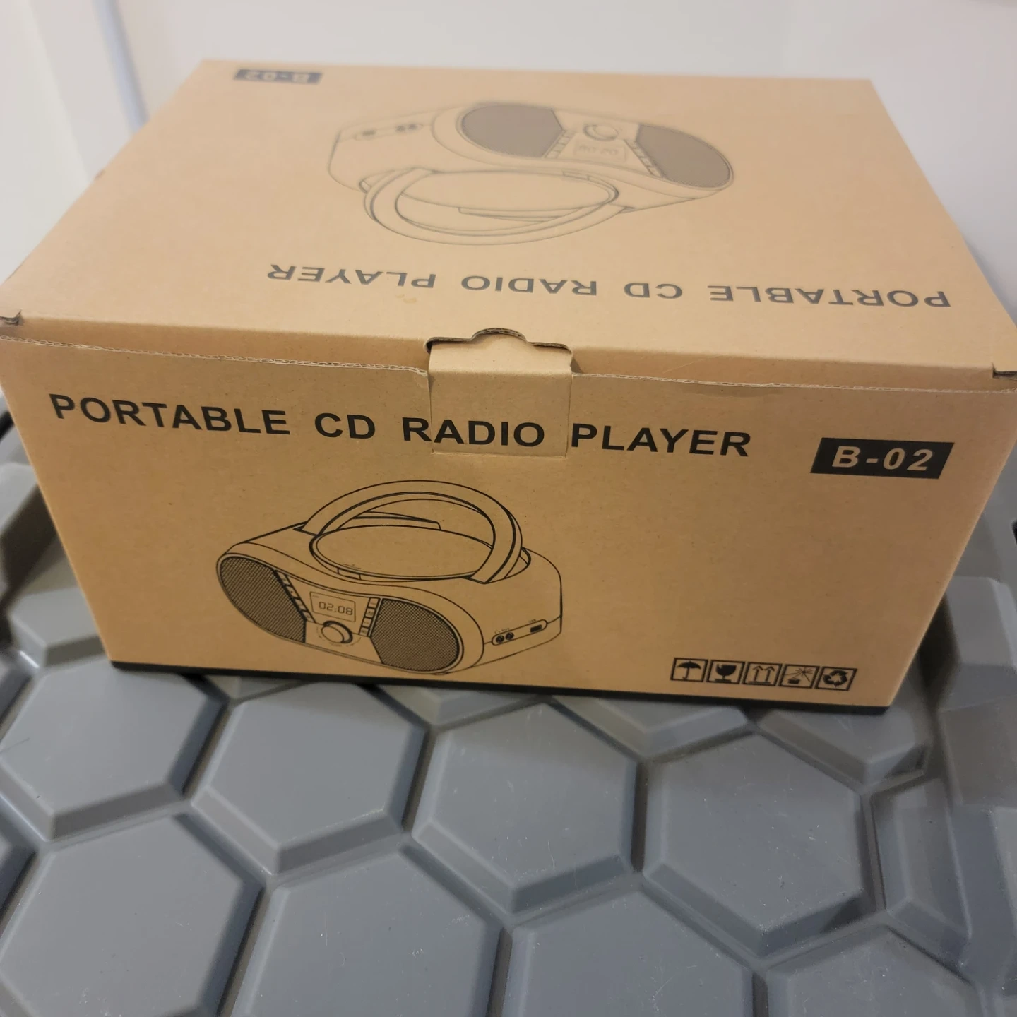 Portable CD Radio Player B-02, a compact, multifunctional audio boombox.