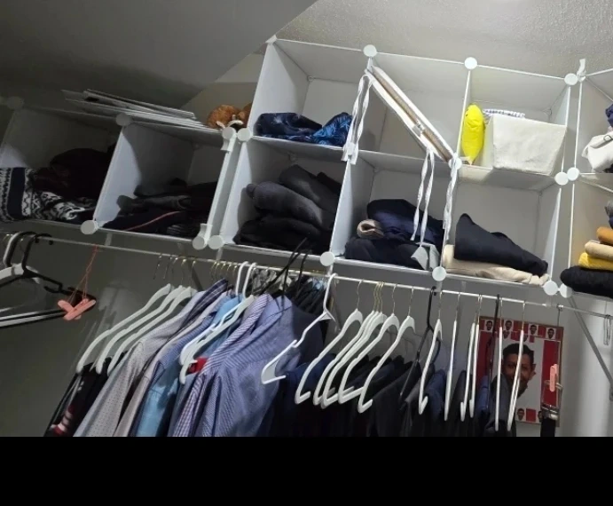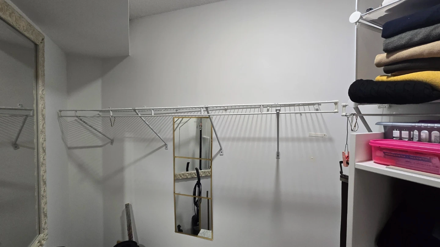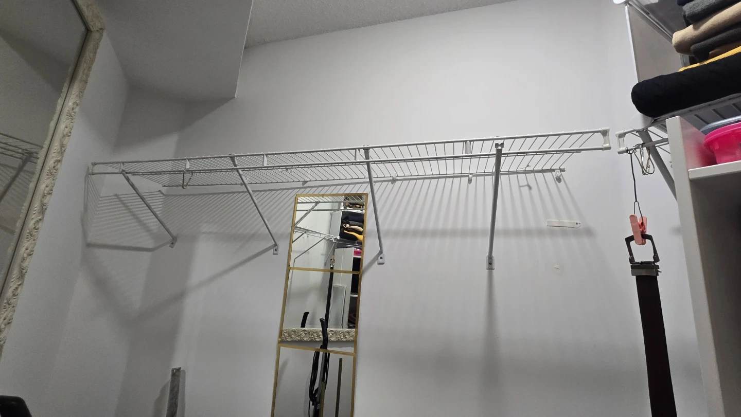 Adjustable wire shelving unit for closets or storage. White finish. Includes mounting hardware except the wall hooks in last pic. Easy to install!