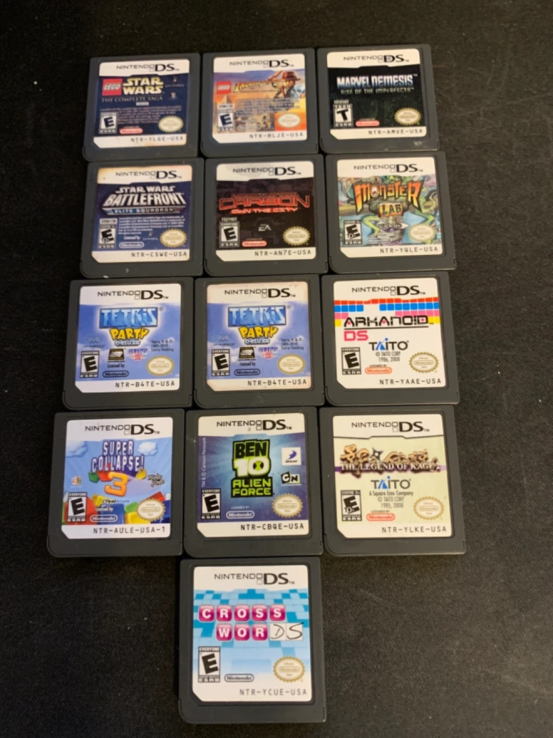 Selling a collection of Nintendo DS games including LEGO Star Wars, Tetris Party Deluxe, Arkanoid DS, and others. Games are for the Nintendo DS system.