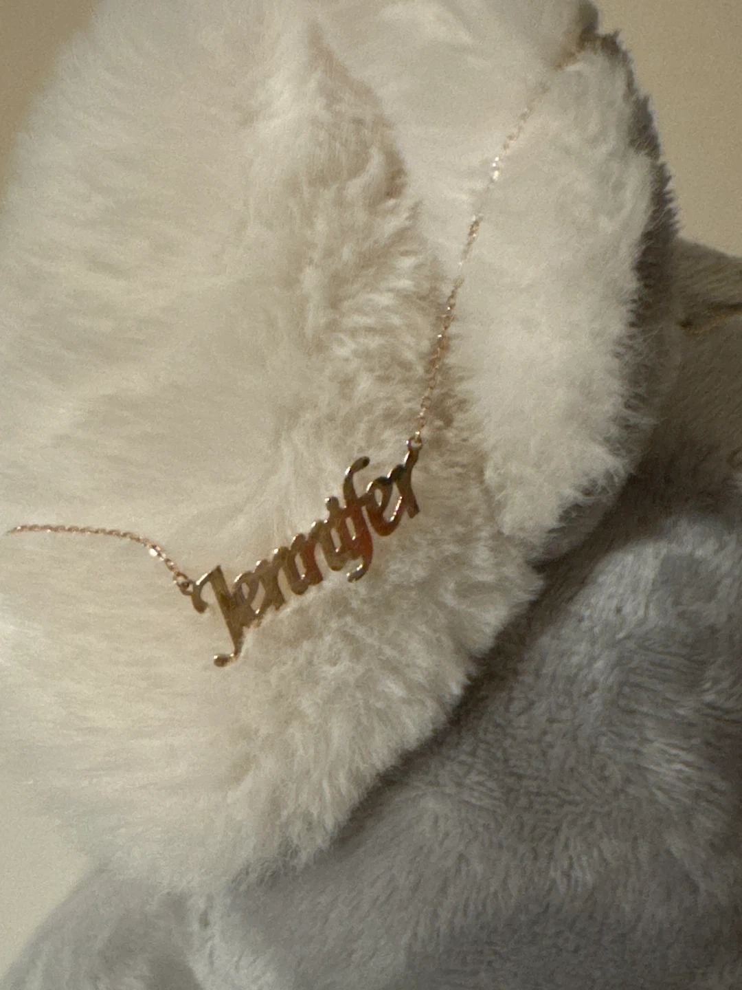 81✨ Attention Jennifers! ✨ Grab this beautiful 14K rose gold name necklace—your name, your style! Gleaming and shiny, it catches the light beautifully and adds a touch of glow to any outfit. Length: 16” Material: 14K rose gold (585)