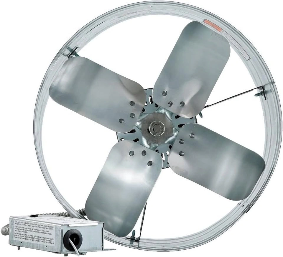 5Used attic fan. Works really well. Original price $150.00 This powerful automatic attic fan keeps your home cool and comfortable while removing hot attic air. During the summer months, hot air can get trapped inside the attic, causing temps to soar above 150 degrees. Using this automatic fan helps reduce heat buildup in the attic and prevents weather-induced home deterioration. The housing is sturdily built with galvanized steel. It has an automatic adjustable thermostat and humidistat. The motor is thermally protected and permanently lubricated for long lasting performance. Product dimensions: 15x8x15 in. Hardwiring required. Install behind shutters for protection from rain. Shutters not included.