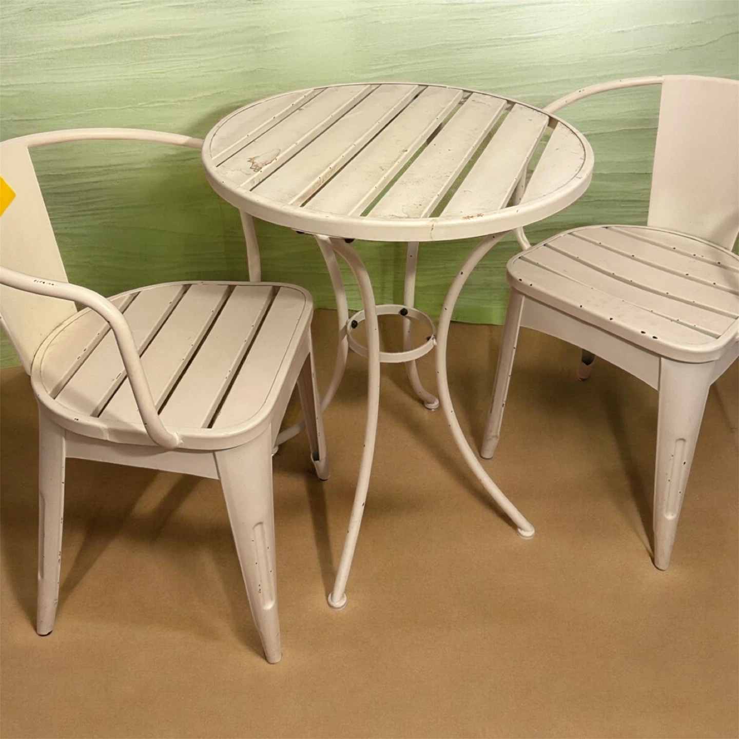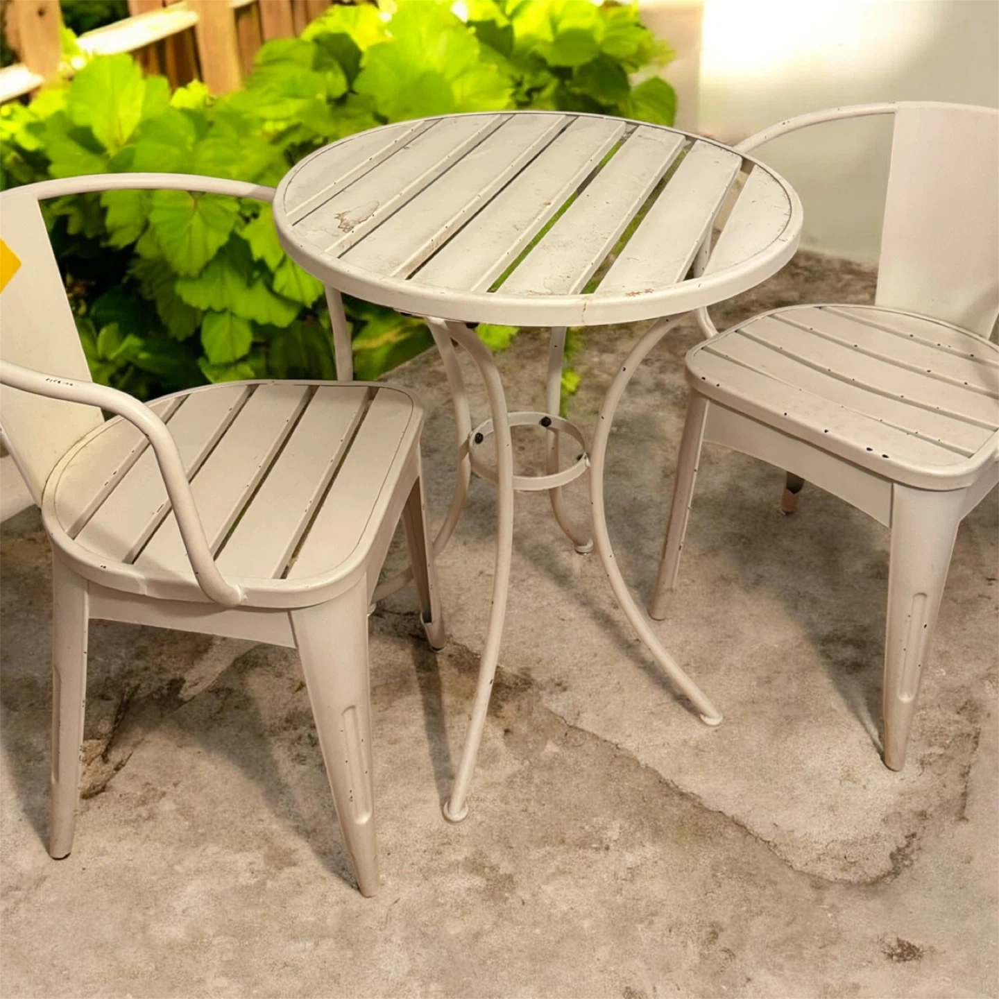 White Metal Bistro Table and Chairs Set